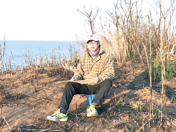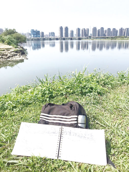 游魚鷺鷥,在討論生存的意義 天光雲影,一旁專心聆聽著 我卻只喜歡等待。 等待妳,波浪般的藍色裙襬 黃昏會走來