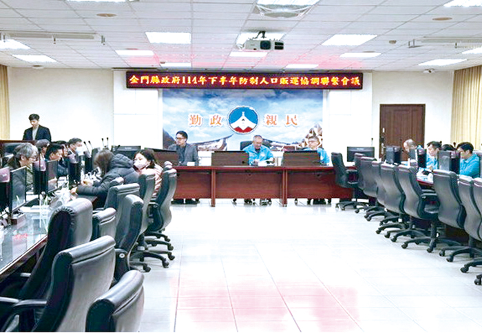 為持續精進防制人口販運工作,提升跨機關協作效能,金門縣政府於1月2日上午召開「114年度下半年防制人口販運協調聯繫會議」,由縣府秘書長張瑞心主持,並特別邀請福建金門地方檢察署主任檢察官葉子誠蒞臨指導。 會議集結縣府警察局、社會處、衛生局、教育處、觀光處及產業發展處等防制網絡單位,並邀請內政部移民署金門專勤隊、金門服務站,以及海巡署第九岸巡隊、第九海巡隊等中央機關共同與會,展現中央與地方攜手合作、共同防制人口販運的決心。 會中,各權責單位就防制人口販運「追訴、預防、夥伴、保護」四大策略面向進行交流與經驗分享,並由社會處、教育處、觀光處、衛生局及警察局等單位依序報告業務推動成果,說明近期在被害人保護服務、校園與社區宣導、防制查緝作為,以及跨機關通報與合作機制等面向之執行情形,透過充分討論凝聚共識,精進實務作為。 警察局於會中指出,隨著社會型態與產業結構快速變遷,人口販運犯罪樣態日趨多元,常見手法包括使他人從事有對價之性交或猥褻行為、勞動與報酬顯不相當之工作、器官摘除、以債務約束被害人、扣留重要證件,或利用被害人身處語言、身分、經濟弱勢而難以求助的處境等,且往往隱身於合法或半合法的工作、觀光、仲介等名義之下,增加第一線人員辨識與查緝難度。 為提升預防成效,警方除持續強化情資蒐報與專案查察外,亦結合相關局處,針對高風險族群及特定行業加強宣導,提升民眾及第一線從業人員對人口販運徵候的警覺與辨識能力,期能及早發現異常狀況並即時通報。 在執法成果方面,警察局表示,下半年度共查獲4件妨害風化(俗)案件,經個案鑑別後雖未符合人口販運構成要件,惟仍可發現不論人口販運或性剝削相關犯罪,均具高度隱蔽性,常潛藏於看似正常的營業或活動模式中,顯示防制工作須仰賴跨機關密切合作與持續宣導,才能有效提前介入處理。 秘書長張瑞心於會中強調,人口販運樣態隨著國際交流頻繁及科技工具普及不斷翻新,犯罪手法更加隱蔽且複雜,防制工作已非單一機關所能因應,必須整合中央與地方政府力量,並結合警政、社政、勞政、教育、衛生及移民等體系之專業,共同建構周延的防制網絡。縣府未來將持續強化跨機關協調機制,整合資源與專業能量,打造更具韌性的防制人口販運體系,守護縣民人身安全與基本人權。