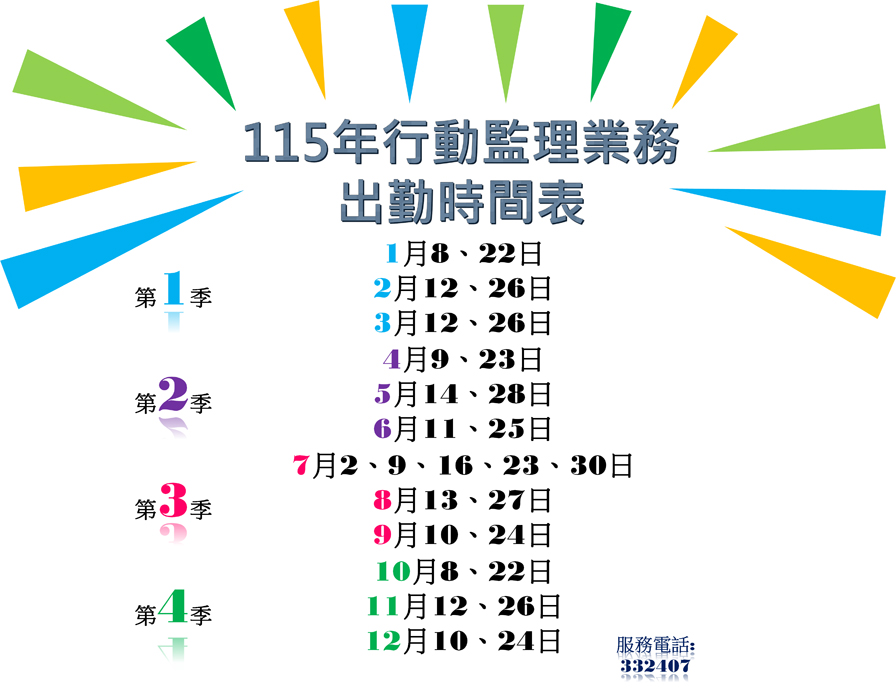 為提升離島偏鄉民眾洽辦監理業務之便利性,金門監理站115年將持續前往烈嶼鄉提供「行動監理服務」,以行動方式縮短民眾往返本島的舟車勞頓,讓各項監理業務更加貼近在地需求。監理站提醒烈嶼鄉親,相關服務場次皆固定於烈嶼鄉公所辦理,請有需求者特別留意服務日期,善加利用下鄉服務。 金門監理站表示,115年烈嶼地區行動監理服務依計畫將於每月第二與第四個星期四辦理,全年服務日期共計27場,包括:1月8日、22日;2月12日、26日;3月12日、26日;4月9日、23日;5月14日、28日;6月11日、25日;7月2日、9日、16日、23日、30日;8月13日、27日;9月10日、24日;10月8日、22日;11月12日、26日;12月10日、24日。特別是7月適逢汽車燃料使用費徵收期,為提升民眾繳費便利性,金門監理站加開多場次服務,方便鄉親就近辦理。 監理站說明,行動監理服務項目主要包括 交通罰鍰收繳、汽車燃料使用費收繳、汽機車報廢、駕照換補發等業務,可協助民眾處理即時申辦或平日較不便前往本島辦理的事項。透過這項行動化服務,民眾可減少跨海交通往返時間,也能在熟悉的社區環境中安心辦理監理需求。 然而,金門監理站特別提醒,行動監理服務並不包含汽機車檢驗等項目,主要原因在於車輛檢驗需使用專業設備及儀器進行測試,包含煞車性能、偏滑測試以及排氣檢測(環保局委託項目)等,無法在行動服務中進行。為確保車輛行車安全與檢驗品質,民眾若需辦理車輛定期檢驗,請至本縣合法代檢廠如弘福汽車有限公司、安豐汽車有限公司或親至金門監理站辦理。 金門監理站呼籲烈嶼地區車主及鄉親,若近期有監理相關需求,可配合行動服務日期提前準備所需文件,避免因遺漏資料造成重複往返,也能縮短現場等待時間。此外,監理站亦將持續檢視民眾使用狀況與需求,適時調整服務內容與頻率,提供更貼心、更便利的公共服務。 監理站強調,推動行動監理服務是政府照顧離島、減輕民眾負擔的重要措施,希望透過服務下鄉,讓監理業務不再受距離限制,真正落實「服務到位、便利到家」的理念。金門監理站也提醒民眾,可隨時關注官網或鄉公所公告掌握最新服務資訊,確保相關業務順利辦理。