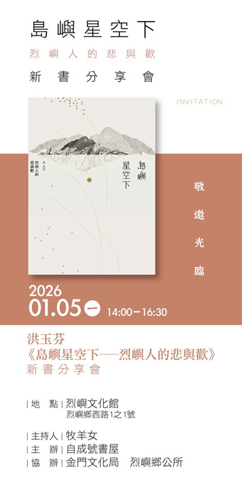 烈嶼作家洪玉芬將於1月5日下午2時在烈嶼文化館舉辦新書分享會,邀請鄉親與讀者一同走進《島嶼星空下——烈嶼人的悲與歡》,聆聽一段屬於烈嶼、也屬於每一個離鄉及回望者的生命故事。 本次新書分享會由自成號書屋主辦,金門文化局、烈嶼鄉公所協辦,並由同樣出身金門的作家牧羊女擔任主持,引言人為國立金門大學華語文學系專任副教授侯建州。活動現場將安排洪玉芬的父親洪天映所屬的群聲南樂演奏揭開序幕,並接續進行來賓致詞、作者分享、對談交流,歡迎民眾踴躍出席,品味一場屬於這座島嶼的深情書寫。 《島嶼星空下——烈嶼人的悲與歡》是洪玉芬歷時多年完成的作品,以自身家族三代為軸線,書寫烈嶼島在時代洪流中的悲歡離合。全書共分為五十七個篇章,以散文式小說體串聯從日治時期、南洋落番、戰地歲月的時代縮影,細膩地呈現離島人民在艱困環境中展現出的韌性、情感與精神。 本書日前已於台北舉辦過兩場新書發表會,獲得文學界與讀者熱烈迴響與肯定。許多文壇前輩甚至讚許此書一出終於補足了台灣文學離島金門這一塊。很多讀者表示,雖然書中寫的是離島烈嶼,但也喚醒了許多台灣家庭共同經歷的時代記憶。全書取材自烈嶼,以自身家族經歷為延伸,透過虛實交錯的情節,完成了一部時代之書。 如今,來自青岐村的洪玉芬回到成長的土地,選擇在烈嶼舉辦分享會,對她而言更具意義。洪玉芬表示寫作已20年有餘,原本是素人作家的業餘玩票性質,如今以父親在南樂成就為榜樣,以文學寫作為餘生的心靈依靠。她寫作的內容風格是遠方的他鄉異地商旅生活,以及近的故鄉人文傳統。這是她首次返鄉辦新書發表會,近鄉情怯,因此特別邀請一路走來有文學革命情感的《金門文藝》社長牧羊女和總編輯張姿慧,一同返鄉為她的新書分享會站台打氣。 洪玉芬不僅長期在商場上表現出色,出過多本散文集,如《希望不滅》、《雜貨商的兒女》、《多情應笑我》、《馬背上的舞步》等的洪玉芬,也醉心於文學創作,即使商旅百國,仍舊無法忘懷故鄉,也無法割捨寫作。因為,她始終懷抱感恩的心。生長在烈嶼這塊土地,從小培養閱讀和思考能力,長大後從事挑戰艱鉅的貿易工作,所有書寫的主旨與精神,歸功於從小孕育的家鄉這一塊土地。 她說,「這本書是獻給烈嶼的。自十八歲離開烈嶼後,故鄉始終在心中占據重要的位置,她很期待透過這場分享會,與鄉親面對面談談寫作、談談我們的過去,以及那些被時間收藏的情感與回憶,也希望藉由《島嶼星空下——烈嶼人的悲與歡》這本書的出版,讓更多人了解這片土地,以及烈嶼人面對生活的勇氣與堅持。