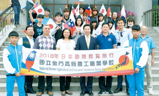 國立金門農工職校三十二位學生,將於今(廿二)日在校長劉湘金帶領下,從金門搭機啟程赴台,明天飛往日本展開為期六天的「日本國際教育旅行」學習交流活動,學生既期待又開心。在出發行前,金門縣長陳福海昨(廿一)日特別跟參與國際教育旅行學生見面及鼓勵,期望他們透過此次旅行和交流學習,開拓國際視野和增廣見聞,讓自己的學習更加成長。 金門農工職校一○七年日本國際教育旅行實施計畫,獲得金門縣府新台幣五十一萬二千餘元的經費補助,農工家長會致贈加菜金新台幣三萬二千元。另,為推動本縣國際教育旅行縱向連結,金門農工在日本國際教育旅行實施計畫案,需推薦一位執行人配合教育處辦理今年金門縣國際教育交流成果發表會,分享赴日本交流學習心得與經驗。 陳縣長是於昨天上午十一時許,與農工職校日本國際教育旅行學生見面,並在學校行政大樓前合影及鼓勵;同時,陳縣長除瞭解農工學生赴日本行程之外,最重要的是跟當地的學校交流和學習,未來也可以到有金門僑親的新加坡、馬來西亞、印尼等地進行教育旅行,增進與僑居地新一代青年交流,也達到開拓國際視野的效益。 今年是金門農工職校辦理國際教育旅行的第三年頭,農工校長劉湘金受訪表示,農工辦理學生國際教育旅行活動,得到陳縣長和縣府支持,並向教育部申請獲得肯定,鼓勵學生到先進國家瞭解他們的教育和學習狀況,藉以開啟學生國際視野和自己的外語能力,最重要的是透過出國觀摩學習,讓自己視野更開闊。 金門農工職校日本國際教育旅行含台灣講習在內,總共是七天六夜,劉湘金指出,農工整個日本教育旅行分為三大區塊,一是日本高校體驗學習及交流、二是對日本名勝古蹟及歷史文化實際體驗、三是在城市裡學習探索,得到解決問題的能力。另,有一天是HOMESTAY,住在日本民居體驗生活,並學習做人禮儀和合作做事方法態度,預定於四月廿八日從日本成田機場飛抵台北,然後再搭機返回金門,結束赴日的整個國際教育旅行行程。