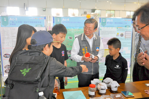 金門縣政府教育處主辦,金城國中承辦「金門地區第五十八屆科學展覽會」已於二十日假金城國中體育館順利圓滿落幕。當日展覽會競賽一結束,還聘請教授舉行科學大師講座,及各科科學作品的評析,由各科專家教授針對本屆金門地區的科學作品優缺點,除做精闢說明及建議外,更透過與現場本屆的學生作者和指導老師進行專業的對話,更提升了金門縣科學專題研究能量,精進本縣科學教育。 經過學生作者現場精釆的簡報及評審教授深入的提問,產生各組各科的作品成績,再透過評審會議,由各科專家教授討論後推薦國中小組三件,高中職組三件,合計六件,赴台參加於今年七月廿三日至廿七日,在台中市國立中興大學體育館(地址:臺中市南區興大路一四五號)舉辦的「中華民國第五十八屆中小學科學展覽會」,為地區爭光。受推薦的六件作品分別為:國小組化學「金門高粱抗氧化能力探討(二)」(金湖國小);國小組物理「小簾立大功:窗簾的吸音與隔音效果之研究」(金湖國小);國小組生物與應用科學(二)「酒矸英雄」(中正國小);高級中等學校組物理與天文學「由克拉德尼圖形探討會變的波速」(金門高中);高級中等學校組動物與醫學「光耀『鱟』世:金門三棘鱟自體螢光現象之探究」(金門高中);高級中等學校組工程學科(二)「什麼?雷射筆差很大」(金門高中)。 本屆地區參展作品高達一五○件:國小七十八件、國中五十一件、高中職廿一件。參展學生作者數達五○○人。 各組優勝作品如下: 國小組數學:第一名-中正國小「戀戀金字塔」,參賽學生:侯思羽、鄭又綺、林芳睿、賴晨瀚,指導老師:盧昆鴻、葉懿恬;第二名-中正國小「企『塗』『球』勝-破解『球塗色遊戲』與延伸思考」,參賽學生:吳俞靜、李珮馨、李易承、趙世寰,指導教師:許凱凌、董力蓉;第三名-安瀾國小「數字黑洞追追追」,參賽學生:陳琛淇、張培玲,指導教師:郭怡伶、王秀琪。 國小組地球科學:第一名-金湖國小「金門土不土-金門地區傾倒廢土之酸鹼值比較」,參賽學生:李佳臻、陳雅庭、許卓雅、李莫、陳蘋妤,指導教師:何曉昀,朱家慧;第二名-金湖國小「讓我們看雲趣」,參賽學生:簡丞祥、林順傑、王冠均、蔡佑霖、孫宥涵、謝雨璇,指導教師:李怡芯、黃茂誠;第三名-中正國小「太陽‧樂『不熱』—探討太陽熱輻射吸收與隔熱」,參賽學生:蔡侑岑、盧勁翰、駱子揚,指導教師:許素娥、盧志鎮;佳作-何浦國小「『升』『材』有道—探討溫度變化對不同建材的影響」,參賽學生:許肇庭、吳沛容,陳韻妃、何恩慈、王昱媗、呂佩穎,指導教師:劉明清、李佳穎。 國小組化學:第一名-金湖國小「金門高粱抗氧化能力探討(二)」,參賽學生:張聖齊、盧淑恩、孫偉勛、何瑀潔、黃煥城、邱柏鈞,指導教師:謝家耀、李永欽;第二名-多年國小「雞蛋逃生泡泡墊」,參賽學生:呂竑達、呂易城、陳宥安、陳世翔,指導教師:林士奇、黃瀅如;第三名-開瑄國小「誰是蔬果王│蔬果抗氧化力之研究」,參賽學生:蔡宥淇、蔡宜蓁、許紜慈,指導教師:童筱婷、林榮新。 國小組物理:第一名-金湖國小「小簾立大功:窗簾的吸音與隔音效果之研究」,參賽學生:黃柏勛、王竣陞、顏宇謙、歐陽雪妍、袁登俊、呂婕瑜,指導教師:李永欽、謝家耀;第二名-中正國小「旋轉!升起!竹蜻蜓?」,參賽學生:王健融, 許丞喆、盧岑驊,指導教師:許開山、楊天祥;第三名-西口國小「就是要涼—DIY太陽能個人涼風扇」,參賽學生:林祐儀、蔡喬雲、蔡柏鍵、馮兆淇、洪子評、林芯妤,指導教師:黃信壹。 國小組生活與應用科學(一):第一名-安瀾國小「自拍照片?照騙?」,參賽學生:王靜怡、李毓恩、陳品瑄、黃吉星,指導教師:洪芷涵、陳曼瑩;第二名-中正國小「E聲宜試│空氣柱的音高與音量研究」,參賽學生:張芷瑄、邵婕瑜、翁詩涵、林子恩,指導教師:黃奎鈞、陳佩玉。 國小組生活與應用科學(二):第一名-中正國小「『酒矸』英雄」,參賽學生:陳柏澄、黃天睿、陳威廷、歐陽凱宸、蔡顯擎,指導教師:李麗娟、葉炳煙;第二名-中正國小「愛鮮宅急便---箱送千里,這卡尚青」,參賽學生:董芷菱、蔡何駿、陳俊光、許庭姵、許耿豪,指導教師:洪建新、黃雍;第三名-上岐國小「紙醉糟迷-手抄紙與酒糟的共生」,參賽學生:洪竣洋、蘇郁晴、洪知璘、林筱庭、洪妤瑄、洪紹揚,指導教師:歐陽泓、傅思瑋。 國小組生物:第二名-柏村國小「光『闔』作用?『壓』苗助長?-豆芽生長之探討」,參賽學生:呂宜靜、謝侑芯、何堉銨、陳明賢,指導教師:翁湘玲、張惠茹;第三名-金沙國小「會包餃子的蟲蟲--榕樹薊馬」,參賽學生:何秋彤、張博勛,指導教師:蔡珊珊、鄭月霞。 國中組物理:第一名-金湖國中「仲秋■舞者-松子的飛行」,參賽學生:林子芸、宋劭婷,指導教師:鄭瑞銘;第二名-烈嶼國中「完美食譜?-『溏』而『黃』之的千百種溏心蛋料理研究」,參賽學生:盧柏彣、洪語伶,指導教師:周華玲、陳延宏;第三名-金城國中「透鏡變化│焦距」,參賽學生:林彥熹、顏甄妤,指導教師:李宜芳、蔡雨君;佳作-金城國中「電電聽我說│檸檬電池探討」,參賽學生:蔡秉岑、文孟轅,指導教師:李宜芳、王品賢;佳作-金沙國中「量小力微也可以!麥管天平的初探」,參賽學生:王識超、陳柏廷、林卓耀,指導教師:楊可欣。 國中組生活與應用科學(一):第一名-金城國中「隱形的防護罩『P』rotect『M』e
