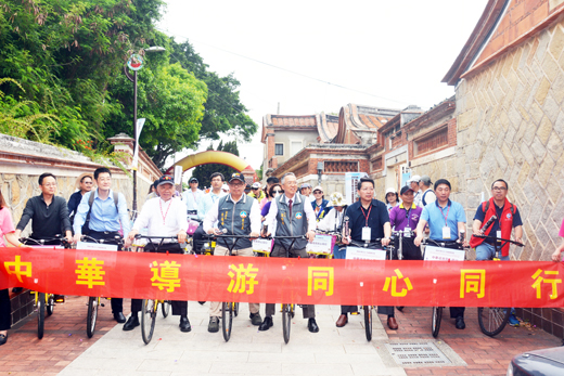 2018海峽兩岸及港澳地區名導論劍之「中華好導遊,共釀一壇酒」、「中華導遊同心同行」戶外活動昨日上午在歐厝傳統建築展示館熱鬧展開,縣府參議翁自保與廈門市旅遊發展委員會副主任張國良及來自兩岸四地的名導與產官學界代表共同釀造金門高粱友誼美酒,並由歐厝至后湖騎乘自行車共同完成「中華導遊同心同行」友好之旅,進一步深化兩岸及港澳導遊之間的交流,提昇導遊服務水平。 「中華好導遊,共釀一壇酒」昨日上午九時三十分在北門天震堂的「祥獅獻瑞」表演熱鬧展開,縣府參議翁自保、廈門市旅遊發展委員會副主任張國良、縣府觀光處副處長李銘培等以及來自兩岸及港澳地區的領導嘉賓與名導遊近二百五十人到場參加。 在兩岸四地的名導見證下,翁自保參議與張國良副主任及兩岸和港澳地區的領導嘉賓以及導遊代表上台共同釀造友誼之酒,並簽名封壇。 參議翁自保致詞時也代表縣長陳福海歡迎兩岸四地的導遊伙伴與產官學代表及媒體伙伴來金,他指出,一罈好酒不僅要有好的環境、好的空氣,更要有好的原料,最重要的是不是有好的師傅,不僅要有匠心,還要有匠術,才能釀出一罈好酒,金門高粱酒名聞遐邇,不只是有一個良好的環境,最重要的是釀酒師傅注入專業與用心,才會成就一罈好酒,而且越陳越香。 「中華好導遊,共釀一壇酒」!翁自保希望結合各名導注入匠心與匠意、貢獻智慧,提昇服務品質,使這壇好酒越陳越香,傳頌千古,讓導遊、旅遊界更蓬勃發展,帶動經濟發展。 廈門市旅遊發展委員會副主任張國良指出,事隔一年又相聚在美麗的金門!去年在金門共釀一壇高粱酒,此次再次把新的一年辛勤努力沈澱這壇酒,銘記導遊服務當中的匠心、匠意。導遊是「匠人」,優質的旅遊離不開優秀的導遊,導遊服務的對象是遊客,要服務不同文化背景、不同學歷的遊客,導遊必須有匠意、必須精益求精,因此倡導導遊的工匠精神,中華文化團結一心、積極進取、提昇服務水平,這就是我們倡導的匠心。 張國良說,導遊是傳遞中華文明的使者,大家擁有共同的理想,致力將中華之美傳遞到四面八方,共享匠心匠意的時刻,也要在金門這個美酒生地,共同參與騎行活動,這不僅是騎行,更寓意著中華導遊的同心、同力、同願、同愛,一路攜手同行。中華導遊齊聚金門,共釀友誼美酒,共行友好之旅,共話行業發展的新未來,希望透過此活動,深化兩岸及港澳導遊之間的交流,提昇兩岸四地導遊服務水平,祝之間友誼如金門美酒一般,越久越香、越醇厚。 在完成「中華好導遊,共釀一壇酒」活動後,接續在翁自保參議與張國良副主任領騎,參與的兩岸四地導遊大家共同騎乘自行車,繞經歐厝村莊展開約三公里的「中華導遊同心同行」,抵達終點站后湖海濱公園,沿途欣賞傳統閩南古厝與美麗的沙灘海景,身心倍感舒暢,也為此次金門的名導論劍活動留下深刻美好的回憶。
