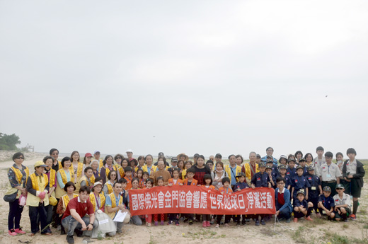 為響應「世界地球日」,國際佛光會金門協會昨在金城鎮海濱公園舉辦「淨灘活動」,在金蓮淨苑住持永勤法師及佛光會金門協會會長余平禧帶領下,近百位佛光義工伴同金門佛光童軍團小菩薩,發心在金城海濱公園及慈湖三角堡一帶淨灘,以佛光人慈悲守護地球的精神,一起來還原金門海邊岸際水水的面貌。 活動前,永勤師父特別開示淨灘的意義,永勤師父說,我們只有一個地球,在家眾淨灘講環保,出家人淨灘談修心,無論是「環保」或「心保」都是守護大自然愛的表現,希望大家一起用行動來愛地球,同時號召更多人來參與這項有意義的活動。在國際佛光會金門協會賣力的號召下,包括會長余平禧,年高德劭的督導楊清國、洪永善,副會長李金鳳、張秀珠、盧志榮及近百位佛光義工昨日均捲起袖子協力淨灘,清出十餘大袋琳瑯滿目的保麗龍、保特瓶及來自大陸海的廢棄物品,以實際行動修補慘遭海漂垃圾蹂躪的臉。 雖然只是短短2、3個小時的淨灘公益活動,余平禧會長說,幾個小時的發心有幾個小時的美麗與感動;副會長盧志榮也說,發心作環保,淨灘的同時,也淨化我們的心靈,期待大家繼續努力,讓金門更美麗,地球更永續。