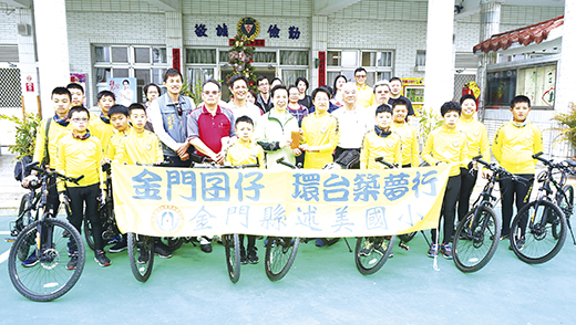 述美國小師生好熱血,在校長的帶領之下,昨(二十二)日赴台展開環島之旅,將述美的單車課程延伸至台灣,預計利用十三天的時間,走訪台灣各縣市,以騎乘腳踏車的方式,用不同的角度來領略台灣之美,也讓這群六年級的小朋友們,能對國小的校園生涯中,有個與眾不同,令人難忘的經驗。 述美國小十一位以六年級為主的孩子們,於昨日搭機前往台灣,將展開為期十三天的全島環台之旅,一行人預計在五月四日完成這項環島壯舉後搭機回到金門。而此次的行程,將從高雄展開,並採取逆時鐘方向,抵達高雄後先往南騎,並轉往東部地區往北,最後再回到高雄,將繞行台灣一周,預計騎乘距離長達一千公里左右。而此次的單車環台活動,也是希望能提供學生更多更寬廣的學習視野,讓學生親自赴台踏查課本裡相關場域及環境,學生自主訓練更需團隊合作完成夢想,讓學生留下深刻難忘的經驗。 而縣長陳福海、議員李應文等人也特別於昨日上午八時三十分左右,趕往述美國小致贈程儀,並給予小朋友們加油打氣,祝福孩子們這趟旅程平安順利。陳福海也對這群孩子們勇氣感到相當佩服。陳福海表示,日前參加校方的麥田音樂會,對於學生們能文能武感到相當驚豔,而他也相當肯定述美師長的用心,他說述美雖小,但是卻是一所相當有特色的學校。而述美擁有很好的環境,還有家長會、社區對學校的支持,陪著孩子們共同學習成長,這也是培育人才必要的。 述美國小校長劉界宏表示,該校的孩子從五年級開始就會有單車課程,從安全、維修、養護、保養、體力訓練、對家鄉認識等一系列的課程都有,而此次的單車環台之旅也算是這項單車課程的延伸,而這兩年課程,校方也帶領學生走訪地區各個景點,因此金門許多特色,這群學生也相當了解,此外學生們也規劃多條自行車路線,還曾經充當嚮導,帶領台灣來金交流的學生們造訪地區各處。 劉界宏說,在金門的課程若是屬於探索課程的話,那此行前往台灣環島之旅,則就是屬於毅力的考驗了,校方用這樣進階的方式來環台,給予學生不同的經驗;而此行更聯絡到當年設立述美國小的孟述美將軍後代,學生在環島至台北後,將親自前往邀請參加今年的述美國小的成果展或畢業典禮。 此外,劉界宏也代表校方,感謝金門縣政府、高雄市浯江金門同鄉會理事長楊維居、縣議員李應文、官嶼里里長楊恭勤、西園里里長黃木林、金沙鎮民代表王石堆、金門縣單車安全協會、金門縣風火輪單車協會等單位,致贈程儀。 此行單車之旅,還要感謝台灣金門同鄉會總會總會長李台山、秘書長黃木財、高雄市金門同鄉會理事長張繼立、屏東縣屏東市金門同鄉會理事長楊恭淼、台東縣金門同鄉會理事長黃白明、新竹市金門同鄉會理事長許維義、台中市金門同鄉會理事長蔡少雄、嘉義市金門同鄉會理事長張雲權、台南市金門同鄉會理事長陳瑞華、台南市浯江金門同鄉會理事長翁明恍、高雄市浯江金門同鄉會理事長楊維居、立法委員楊鎮浯南區服務處主任蔡忠盼、金門縣政府南區服務處主任楊美雪等的沿途幫忙。