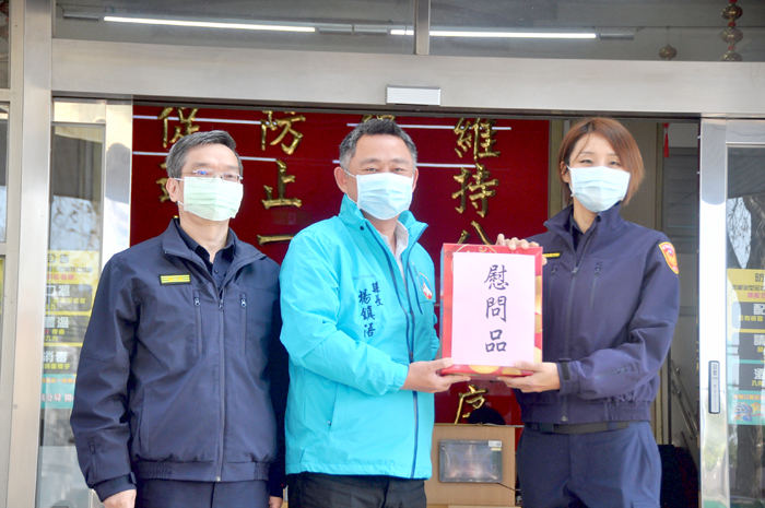 春節前夕,金湖鎮公所與金湖鎮民代表會4日展開勞軍行程,由金湖鎮長陳文顧與代表會主席蔡乃靖領軍,同行包括副主席林麗芬、代表蔡建偉、蔡建立、李秀華、林嘉森、陳秀卿、洪海水以及各里里長、金湖鎮後備軍人輔導中心、金門縣軍人之友社、青溪婦女金湖分會,及鎮公所秘書黃景俊、各課室主管等。 金湖鎮勞軍團昨日陸續走訪金門縣警察局金湖分局、陸軍金門地區支援營、海洋委員會海巡署金馬澎分署第九岸巡隊、陸軍航空特戰指揮部兩棲偵察營、海洋委員會海巡署艦隊分署第九海巡隊、金門縣消防局金湖消防分隊,感謝地區駐軍以及轄區的警消人員平日對金湖轄區內的國安、治安維護、救災救護等的辛勤及努力。 鎮長陳文顧表示,有感於軍警消平日對於治安、交通及防疫工作的努力投入,且在即將到來的春節連假,軍警仍堅守崗位守護民眾的安全,努力讓民眾有一個安居樂業的優質宜居家園,在此給予萬分肯定與鼓勵,感謝金湖地區軍警消弟兄們平時對於鎮務的配合與協助,也肩負保衛金門的任務,勞苦功高,備極辛勞;因此鎮公所與鎮代會獻上一些禮品,讓軍警消弟兄們在假期辛苦輪值時,也能感受過節氣氛。各單位主官也親自出面迎接勞軍人員,對於各與會單位的一片心意,表達感謝。 金湖鎮代會主席蔡乃靖表示,農曆春節將屆,人到佳節倍思親。我國傳統節日春節來臨之際,公所及代表會前往慰問金湖地區軍警消弟兄們,他們平日必須要犧牲與家人團聚的重要節日堅守崗位,表達十二萬分的敬意與謝意,而且金湖鎮有任何需要軍警消弟兄們的協助,弟兄們也都是適時給予協助,他特別向軍警消弟兄們祝福佳節快樂。