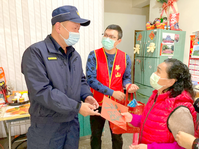 金湖分局表示,鑑於近年來金沙及金湖地區高齡獨居長者有逐年增多趨勢,適逢春節前夕,為使轄內獨居長者及弱勢族群有一個溫馨的年味,金湖分局今年特別結合華山基金會,以送年菜、春聯及保暖衣物等應節物資實際行動,關懷地區獨居長者及弱勢族群。 金湖分局於1日上午由分局長何明祥率同分局一組及派出所同仁與華山基金會,共同前往轄內多處獨居老人家中親自送上物資祝福,同時向老人家們賀年,獲得熱烈的歡迎。 本次金湖分局與華山基金會共同前往金湖、金沙等地區關懷多名獨居長者,除送上豐富的年菜,還有春聯及手做毛線袖套等應節物品及禦寒物資,並幫老人家測量血壓,關心他們的身體健康狀況,讓高齡長者在寒冷的冬天能夠感受到滿滿的溫暖。 除此之外,金湖分局於日前也發起同仁樂捐集資活動,並將募得款項全數捐予華山基金會,做為華山基金會常年執行關懷協助地區獨老之費用。 金湖分局長何明祥表示,警方平時雖忙於維護治安、交通等工作,但仍不忘要求警勤區每月不定期前往轄區獨居老人或弱勢族群家中慰問,適時提供必要之協助,節慶期間更加強實施訪視關懷,期望能讓老人家們感受到社會的溫暖及春節的歡樂氣氛。