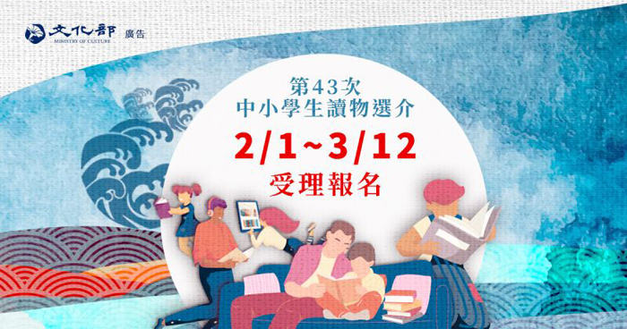 金門縣文化局指出,文化部經公佈「第43次中小學生讀物選介」活動簡章,即日起至3月12日止受理報名,凡於109年1月1日至12月31日期間,出版發行圖書(包含電子書)、套(叢)書或雜誌之法人、商號、團體、機關(構)、學校、個人均可參加。 文化部說明,中小學生讀物選介活動希望能推介適合中小學生的讀物,藉此培養兒少閱讀的興趣,文化部將邀集國內學者專家籌組委員會,辦理初審、複審及決審等評選作業。參選讀物適讀年齡層自「學齡前」至「高中職」階段,分八個參選類組,包含「圖畫書類」、「自然科普類」、「人文社科類」、「文學類」、「文學翻譯類」、「叢書、工具書類」、「漫畫類」、「雜誌類」。 獲選書單後續將公佈於活動官網,以作為兒童與青少年、家長、教師選擇讀物,以及各級學校、圖書館選購參考,官網也包含歷年讀物推介書單,歡迎有興趣的民眾上網搜尋或下載參閱。 本活動一律採用網路報名,有意參加者請先上網詳閱報名簡章規定,並列印報名表連同應檢附之文件、參選讀物,於截止期限前,以掛號郵寄至承辦單位「聯合線上股份有限公司—中小學生讀物選介活動專案小組」(地址:22161新北市汐止區大同路一段369號)。