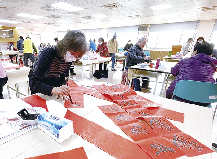 金沙鎮公所110年「迎新春、寫春聯」活動,假鎮公所三樓會議室辦理。金門縣書法學會書法家到場揮毫書寫春聯,免費贈送給到場鄉親(每戶限索取三副),共約送出1400副春聯。 迎新春、寫春聯!金沙鎮公所舉辦110年迎新春現場揮毫致贈春聯活動,假金沙鎮公所三樓會議室辦理,金門縣書法學會理事長吳宗陵,以及陳應德、孫國粹、張水團、陳篤居、陳玉貞、翁坤成、陳為庸、陳炳仁、張素勤、李麒麟、蔡錦海、王振昌等到場揮毫,書寫春聯,免費贈送給到場參與的鄉親(每戶限索取三副),不少民眾到場,選擇自己喜歡的書法家,排隊索取春聯,一副副象徵新年新希望以及祝福的春聯,佈滿會議室,增添年節氣氛。 金沙鎮公所表示,因應防疫措施,採實名制,場內限50人,並於入口須配合測量額溫及消毒,全程佩戴口罩,總共送出1400副春聯。