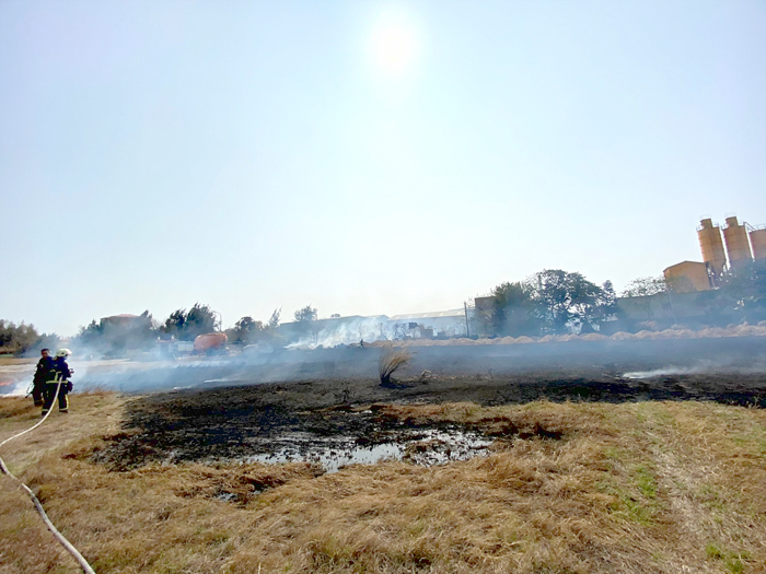 天乾物燥,小心火燒埔!金湖消防分隊表示,1月27日11時23分,接獲報案表示三谿橋與畜試所間一起田野雜草火警,現場因巷弄窄小消防車難以接近,且當時下風處緊鄰油料倉庫,一旦起火火載量驚人,現場指揮官小隊長蔡智成立即請求加派消防水庫車到場支援,所幸現場戰術運用得宜,積極周界防護,成功阻斷火勢蔓延,火勢於11時52分撲滅,燃燒面積約300平方公尺。 金門縣消防局第二大隊金湖分隊於27日11時23分接獲1起田野雜草火警,第一梯次車組出勤即發現遠方濃煙密佈,到場後發現下風處火勢逼近一棟油料倉庫,車組立即請求加派消防水庫車支援,金湖分隊車組優先防護該倉庫,阻斷火勢蔓延路徑,火勢雖迅速獲得控制,惟因緊臨油料倉庫火載量大,現場殘火需謹慎處理,現場指揮官小隊長蔡智成遂協請周邊推土機協助開闢防火線,並翻搗悶燒雜草,現場人員積極進攻深層火點,火勢終於11時52分撲滅。 第二大隊大隊長陳奇表示,由於時值東北季風強盛時期,加上久旱未雨,火勢蔓延迅速,本次火警所幸成功防護油料倉庫,方能有效侷限火勢影響範圍,也呼籲民眾切勿隨意焚燒雜草,注意平日用火用電安全。
