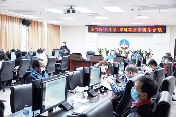 金門縣道路交通安全聯席會報一一○年第一季會議於昨天舉行,由縣府代理秘書長陳朝金與警察局主任秘書李智源接手主持;在第一階段會議中,首先進行上季(歷季)等會議建議事項辦理情形報告及討論列管事項,接著進行二項提案及一項臨時動議案討論,並均作成決議。至於第二階段會議,則有各項工作檢討及工作小組業務報告,專案報告的議程。 今年第一季道路交通安全聯席會報會議於昨天下午二時於縣府第一會議室舉行,在上季(歷季)等會議建議事項辦理情形報告及討論列管事項中,計十三案,其中「民眾建議瓊林圓環(環島北路)紅綠燈於上午七至八時啟動三色號誌」案,觀光處預定下個月底可完成,決議賡續列管外,其餘案件均同意解除列管的決議結果。 由觀光處承辦的「改善瓊義路開瑄國小前停車場路口道路標線,維護車行安全」案,已於去年十一月二日正式會辦工務處協助納入工程改善,工務處執行經武路(開瑄國小至瓊徑路口)暨環島南路33段(瓊義路口至尚義圓環)等道路改善工程,工程刻正進行中,預計今年七月前完工,路面標線改善部分,約於五月前進行。 至於有關民眾常反映道路施工何時完成?何時封層?執行單位為何?是否可製作醒目看板,讓民眾清楚知道工程執行進度。承辦單位工務處表示現行道路工程依行政院公共工程委員會規範,均需於工地現場設置工程告示牌,揭露工程基本資訊,並含每月執行情形摘要,將再請各工程主辦機關督促承商按月更新現場工程告示牌。另行政院公共工程委員會之「標案管理系統」,網路版之工程告示牌包含每月執行情形摘要,符合定期更新工程執行進度資訊揭露的需求,將研議連結公共工程公開資訊的可行性,以及將持續研議工程進度資訊之醒目揭露方案。 歷季會議提出鑒於地區圓環交通事故不斷,且用路人多無路權禮讓觀念,建請研擬改善措施或設置交通管制號誌,避免交通事故發生。承辦單位觀光處表示短期由觀光處先行設置槽化標線等改善,長期改善請相關單位就路型檢討可使圓環置中,使其發揮原本效益,如無明顯成效再考量設置號誌。其中,標線改善於去年十一月十一日全部完成,並提醒用路人行經圓環時遵守道路交通安全規則「車輛行至無號誌之圓環路口時,應讓已進入圓環車道之車輛先行」及「車輛行經多車道之圓環,應讓內側車道之車輛先行。」規定行駛,以維行車安全。在道安會報提案討論議程中,首就建議啟用陽翟統一超商路口號誌案,經討論後決議採在不啟動號誌運作情況下,就路口現況做簡易改善,將停等線及雙黃線往前延伸,將路口縮小增加行車視距,降低肇事風險。 至於道安會報提案討論第二案有關金城鎮民代表會第十二屆第四次定期大會提案建請於民權路、摩斯漢堡前路口設置紅綠燈及行人穿越道,以減少交通事故。觀光處審查意見:一、案址與民權路環島西路二段號誌路口僅距八十公尺,依「道路交通標誌標線號誌設置規則」第二二六條第一項第七款規定,幹道連鎖之前題需各路口間距超過二百公尺,路口過近容易造成道路貯車空間不足,恐造成車輛回堵,幹道交通號誌連鎖之效益將大為降低。二、經實地勘查路口車流狀況,民權路與金城新莊七巷路口車流量相差懸殊,未達設置標準。三、該路口因未達設置號誌要件,故仍維持現況;另行人穿越道部分,現地已繪設三組綠色骨材標線供行人使用;相關標誌標線均有設置,請依規定小心行駛。另依據交通部統計,金門縣一○八年度易肇事路段十四處,其中號誌路口為八處。基此,號誌路口非絕對安全,仍有賴駕駛人確實依道路交通安全規則相關規定行駛,方能確保自身安全。 另在臨時動議,觀光處提出「環島北路后盤山路段,目前速限六十公里,惟往來車輛車速過快,危及村民行的安全,建議調降速限及設置測速照相機,以維安全」案。觀光處審查意見指出案址相關減速標誌、標線均有設置,但經評估未達設置號誌要件,不宜設置,但為有效嚇阻及降低路段車速。經會議討論作成盤山村路段速限六十公里調降至速限五十公里的決議,以維村民行的安全。 至於該案建議設置測速照相機事項,經討論後依警察局審查意見通過決議,警察局將責由轄區金城分局加強該路段之事故防制勤務,並利用現有雷射測速儀等機動測速取締,但長期以往,仍應加強交通安全教育,改正用路人駕駛習慣,降低事故發生。