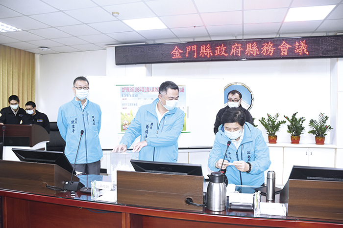 金門縣政府昨召開110年第1次縣務會議,有鑑於新冠肺炎疫情持續嚴峻,縣長楊鎮浯強調,今年農曆春節,有必要框定為「平安防疫年」,藉著相關新聞稿的說明和置入,向鄉親說清楚「春節防疫」的特殊性,也希望透過防疫年的標籤化、定型化,讓鄉親理解縣府減少春節聚集活動、全面防疫的合理性,避免引發返鄉過節人潮對停辦大型活動過度的疑慮。 楊鎮浯也說,春節是中國人傳統社會最重要的節日,即便去年金門遭逢50年來最嚴重旱災,林務所被迫取消今年春節花海的營造,但透過相關廢材佈設的藝術裝置,也讓今年縮小辦理春節活動的金門,呈現不一樣的年節氛圍。 另外針對縣府編外同仁的考核,楊鎮浯說,去年他曾要求人事處等相關單位,務必要撇除那種「吃大鍋飯,大筆一揮全拉上來」的鄉愿心態,按考核辦法核定等第和汰除比例,在嚴格執行下,去年也確實汰換了一些不適任同仁,今年因疫情需要,很多單位都向他反映去年已篩了一波,基於防疫人力的不足,宜考慮放寬考核汰除比例。 對此,楊鎮浯說,他理解同仁都很辛苦,也深知那種「吃大鍋飯」的心態不可取,但若各單位確實有人力需求缺口,在既定考核原則和方向不變這個大前提下,今年他會請人事處審慎研議放寬人員汰除比例。 值得一提的,昨日會前除了辦理縣府暨所屬機關公職人員109年度財產申報實質審查及前後年度申報財產比對公開抽籤作業,也進行本縣榮獲「109年度地方財政業務輔導方案全國第二名」殊榮的獻獎儀式,由財政處長孫國智將所獲獎項呈獻給楊鎮浯縣長。 會中也就上次會議10項主席指裁示列管案進行討論,其中,因應萊豬開放進口案,衛生局指出,該局在整備和輔導的部分,目前都已告一段落,另針對來源管控、市場追蹤及學校營養午餐和社區共餐豬肉產品的抽驗,今年1至2月預計抽驗120件,目前已抽驗49件並送驗中。今年上半年度預計再抽驗50件,並將檢驗結果即時公布於該局萊豬專區,希望做到完全資訊揭露,並讓鄉親擁有充分的選擇空間。 另針對確保鄉親食用本縣產豬肉安全部分,建設處表示,本縣109年度配合中央畜產會執行畜禽產品安全衛生預警計畫,自縣內55場養豬場隨機選定44場抽樣180件豬血清送檢,抽檢率達八成,檢測結果均未檢出殘留;將賡續辦理計畫以落實在地豬肉源頭管理抽驗稽查,防範不當藥物殘留發生。 至於有關金門整體水資源規劃,建設處表示,為於乾旱期間加速工程執行,該處擬先行動支110年度「災害準備金」2,100萬元,並於去年底函請各公所,針對優先度較高之32處農塘(增加約6萬8,000立方公尺蓄水量),得以先行辦理發包招標作業,經查金沙鎮、金湖鎮及金寧鄉已將相關資料報府辦理農塘浚深,現正陸續核定辦理中,俟預算完成法定程序後,再撥付予公所。另有關農業天然災害救助,該處已擬定sop流程,以因應災損發生。 工務處也說明,有關國家公園範圍內之湖泊浚深,目前建設處已協調金管處積極爭取。另放流水回收計畫,金門各水資源回收中心總放流水量約每天8,300噸,目前已回收量約每天5,300噸(約64%,台灣再生水僅約1成)。為提升再利用量,現已依建設處等單位所提之需求,增設相關揚水設施及管線,經費合計450萬元,後續將儘快依程序完成設計及招標,以達全量回收之目標。 而有關放流水計畫進度,工務處指出,地區各水資源回收中心每天排放水量約8,300CMD,目前已回收再利用量約5,300CMD,為利提升再利用量,以提升放流水再利用,自來水廠於去年12月下旬提報放流水回收再利用改善計畫,預計建置揚水設施及輸水管線輸送至蓄存水塘,經費合計450萬元,期程為110-111年,計畫刻正陳核中,俟簽准後函請營建署申請補助辦理。 此外,針對今年整體觀光旅遊行銷及推介,觀光處表示,考量預算未通過,擬持續運用網路行銷平台,如樂遊金門FB粉絲團、金門縣政府觀光處LINE官方帳號、kinmentravel IG、樂遊金門部落格,利用圖文、影音炒熱推播目前最夯、最熱門的觀光話題,如陽翟文青遊、類出國等主題。另該處最近也陸續於電子媒體,如透過食尚玩家、民視八點檔等方式進行多元宣傳行銷。 對此,楊鎮浯不諱言,部桃疫情延燒,打亂了許多觀光客來金門春遊的腳步,今年若疫情「不上不下」成為新常態,觀光處在推介旅遊部分就要有新思維,不能邊走邊看,而是要提前做好相關因應和規劃。 而顯然的,今年上半年觀光相對辛苦,如何突破觀光困境、如何振興在地經濟,各單位都要未雨綢繆,若預期產業今年仍無法恢復,也請各單位要檢視自己有無更周全、更精進的作法,藉以帶動地方的經濟發展。 昨日會中也就二項提案進行討論:提案一、審議修正「金門縣畜產試驗所組織規程」暨編制表草案(人事處)。提案二、審議縣府提請金門縣議會審議案計內政部補助辦理110年度「都市危險及老舊建築物結構安全性能評估」新台幣118萬2,500元墊付(先行動支)案等4案:第一案、建設處-110年度「都市危險及老舊建築物結構安全性能評估」墊付(先行動支)案。第二案、衛生局-「108年獎勵地方政府落實推動食安五環改革政策計畫」墊付(先行動支)案。第三案、行政處-擬具「為辦理離島建設基金補助計畫『金門縣第六期(112-115年)離島綜合建設實施方案規劃』追加預算及墊付案」草案。第四案、社會處-110年度「金門縣政府辦理身心障礙者主動關懷服務方案」墊付(先行動支)案。