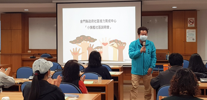 金門縣政府社會處於去年輔導社區推動小旗艦計畫及辦理成果觀摩活動,發揮母雞帶小雞功能,讓領航社區增加量能及參與社區活絡運作,受到各社區熱烈迴響,因此今(110)年度將持續編列經費補助推動,昨日及前天分別在青岐社區活動中心及社福館辦理二場次的輔導說明會,邀請長榮大學社會力研究發展中心潘美純老師督導,讓參與人員了解計畫之精髓,帶領公所及社區成員,從社區需求及自我現況分析找出可以相互協力推動的議題,並輔導其提報計畫爭取經費補助。 社會處處長董燊由社行科方小萍科長陪同出席說明會現場致詞時表示,縣府團隊關注社區經營,小旗艦計畫之推動本縣於去年舉辦,成效獲肯定,今年續辦主要是希望能鼓勵績優的社區透過母雞帶小雞,共同分享成長,以互助、互利的精神建立社區網絡,再藉由縣府及公所一起輔導共同促進社區成長,縣府樂見有更多的社區加入推動,期許社區工作不孤單,有伴作伙逗陣行,讓社區量能活化種籽在各鄉鎮遍地開花,創造讓大家都幸福的福利化社區。 縣府社會處表示,今年度經鄉鎮公所調查社區參與意願,截至去年十二月底計有曾獲績優社區獎項的金沙鎮忠孝社區發展協會、金湖鎮下莊社區發展協會、金寧鄉榜林社區發展協會及烈嶼鄉青岐社區發展協會四個協會擬擔任領航社區,與臨近金沙鎮斗門社區及何厝社區,金湖鎮信義社區及山外社區,金寧鄉古寧頭社區、安岐社區、盤山社區及后盤山西山社區,烈嶼鄉上庫社區及楊厝社區等協會共同推動小旗艦計畫,縣府召開說明會期許再廣為深入向各社區說明計畫意涵,期能有更多社區加入,並讓已規劃辦理社區能建立初步共識。