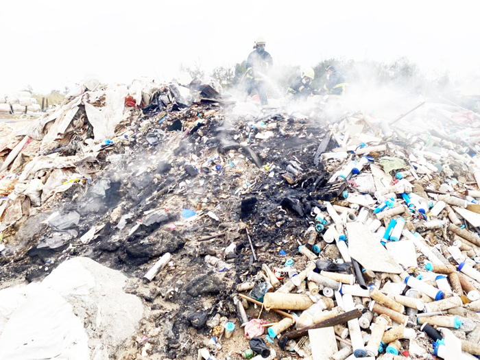 又見火警!金湖消防分隊表示,28日清晨7時12分獲報新塘垃圾場火警,立即出動水庫車組,車組在環島南路上即可看見大量黑煙竄出,分隊長陳效杰立即請求水庫車組到場支援,到達現場時,垃圾堆已陷大火,所幸現場戰術積極周界防護,阻斷火勢蔓延,火勢於7時59分撲滅,燃燒面積約200平方公尺。 金門縣消防局第二大隊金湖分隊於28日清晨7時12分接獲新塘垃圾場火警,第一梯次車組出勤即發現遠方黑煙密布,因垃圾場存放大量可燃物,為避免堆放區間快速延燒,立即以水線阻斷火勢路徑,考量恐因悶燒,短時間火勢難以撲滅,車組立即請求水庫車支援,現場利用移動式泡沫滅火液進行窒息戰術,分隊長陳效杰協調場區重機具協助開挖,輔以水線澆灌,火勢迅速獲得控制,惟場區內火載量大,現場殘火需謹慎處理,消防人員水線佈署延怪手開挖路徑持續澆灌降溫,火勢於7時59分撲滅。 這已經是近一周內金湖地區第三起野外火警,讓金湖消防人員疲於奔命,24日料羅地區一處資源回收場發生大火,湖消緊急灌救2小時才終於撲滅。27日金湖地區一處油料庫旁也發生火燒埔火警,湖消半小時內隨即撲滅。 第二大隊大隊長陳叁奇表示,鑒於新塘垃圾場過去搶救經驗,面對該處火警同仁都格外謹慎,本次火警所幸成功阻隔延燒路徑,方能有效侷限火勢影響範圍,也呼籲民眾切勿隨意焚燒雜草,注意平日用火用電安全。