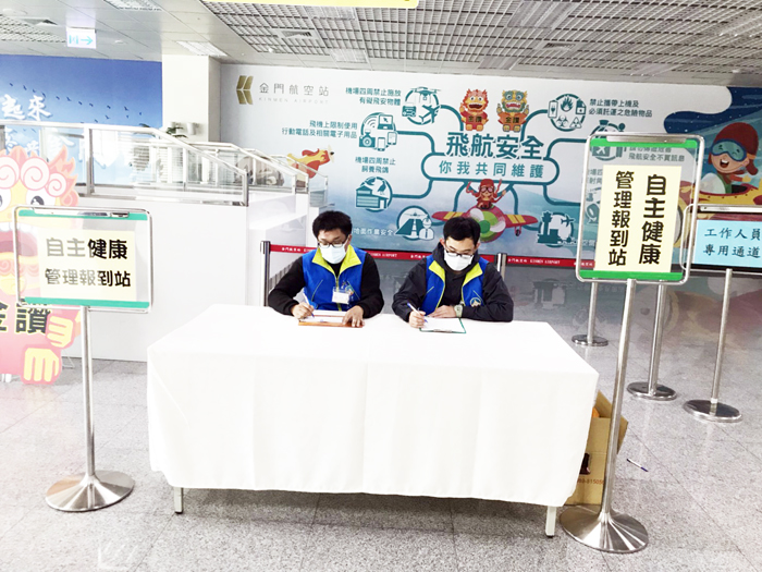 為因應農曆金牛年春節前,已於台灣完成十四日「居家隔離\居家檢疫監測期滿者」,返金鄉親之需要,金門縣政府自即日起於金門航空站設置「自主健康管理報到站」。另依現行防疫規定,鄉親自國外返國,必須先在台灣完成十四日「居家隔離\居家檢疫」,返鄉後尚須執行七日「自主健康管理」。 為避免防疫缺口,強化防疫管理,縣府分別函請各航空公司於班機降落前協助廣播:「請於臺灣本島完成居家隔離或居家檢疫監測期滿之自主健康管理期間者(返國未滿二十一日之鄉親),請下機後,逕至縣府自主健康管理報到站」報到,縣府將通報金門縣衛生、民政及各鄉鎮公所,定期健康關懷及諮詢,以協助完成七日「自主健康管理」。 縣府提醒鄉親,家中如有近期返國之親屬,請於自主健康管理期間,養成勤洗手、早晚各量測一次體溫之習慣,如有發燒(高於三十八度)之情形,請立刻佩戴口罩,通報衛生局(082-330697)及依指示就醫,禁止搭乘大眾交通工具。如就醫後,經醫院安排採檢,自採檢醫院返家後,於接獲通知檢驗結果前,應留在家中,不可外出,如檢驗結果陽性,衛生局將會通知及安排就醫。