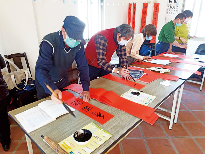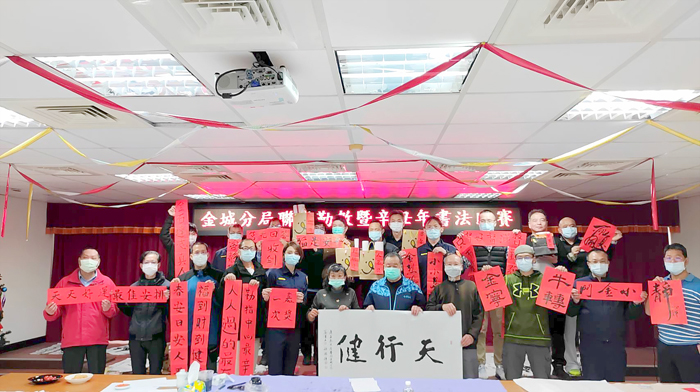 為迎接新年的到來,賢聚社區在賢庵里里長顏士強與社區理事長盧思維的號召下,於日昨在賢聚社區活動中心舉辦春聯揮毫活動。活動由社區志工隊副隊長邀請社區大學書法班洪明燦、翟美珍老師領銜,率領蔡顯吉、張金石、許秀瓊、李明輝、陳月華、張素勤、陳玉貞等多位學員現場揮毫書寫春聯,提供五佰副春聯,免費贈送鄉親張貼,在艱困的大環境下為鄉親省荷包,喜迎新春新氣象。 農曆春節將至,為增添年節氣氛、活絡鄉親情誼,金城鎮賢聚社區發展協會舉辦牛轉乾坤賀新春揮毫送春聯活動,在洪明燦老師帶領下,一行學員現場書寫春聯,於活動中心供社區居民取用,現場宛若書法班成果展。 盧思維表示,農曆春節為居民最重視的節慶,家家戶戶都會換上新的春聯,以迎接新春的到來,賢聚社區已連續兩年結合社區資源,邀請社區大學書法班為社區居民進行春聯揮毫活動,居民反應熱烈,感謝顏里長贊助春聯用紙,讓活動順利、居民同樂。