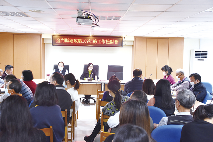 金門縣地政局召開109年年終工作檢討會,由局長葉媚媚主持,副局長呂清福與科室主管及員工出席。會中葉局長代為轉達楊縣長對地政同仁的辛勞表示肯定與期許,各科室報告年度計畫的執行成效,同時對實務面產生之問題提出檢討與因應,展望新的年度提出工作重點及施政建議事項。 地政局以簡政便民、土地安居、主動創新及多元行銷四大主軸,榮獲縣府年度團體行政革新獎,落實楊縣長「土地安居、幸福島嶼」理念及願景,個人獎項則由投身地政工作38年科長鄭易明先生獲得服務模範楷模獎,地政局葉局長感謝縣府對地政業務整體表現及同仁付出表示肯定,也由於地政同仁這一年來勇於創新改變,能夠與時俱進,並配合縣府政策,經大家共同努力經營的成效,同時亦期許同仁繼續秉持同理心,視洽公民眾如親,新年度再創佳績。 會中報告109年度工作成效: (一)在簡政便民、創新服務方面:推出多項便民措施,除開辦跨縣市收辦土地登記業務外,利用大數據分析軟體,建置視覺化圖表,從中發現趨視與需求,進而研擬更加完善的政策;也推出縮短複丈作業期程,由原來15天縮短為12天;結合網際網路推出線上申請及多元繳費;另為服務僑親,提供多元聯繫管道,規劃建置「海外僑親土地繼承諮詢平台」,透過LINE、FB等科技通訊軟體,提供及時語音或面對面視訊諮詢服務,打破空間限制,維護海外僑親的土地權益;另也建立粉絲專頁,影音影片推播及行銷各項縣政政策及施政績效,讓更多鄉親充分了解地政作為,也讓縣府施政更貼近民意。 (二)在地籍圖重測方面:本縣已完成地籍圖重測數值化高達93%,目前西半島待重測區域僅餘古寧頭段1359筆,經內政部核定納入今年(110年)辦理完成後,西半島(含烈嶼地區)將全部數值化。至於東半島待重測地段僅餘金湖、金沙部分自然村範圍、筆數1萬3千餘筆,正擬重測計畫逐年向內政部爭取,預定於118年完成,本縣地籍圖將全面數值化。 (三)在土地安居方面:接續辦理城三及閩專一區段徵收,將依作業期程,加速推動,讓土地整體開發更能符合鄉親的期待。 (四)在土地問題方面:除協助民眾依相關規定申辦土地購回、讓售及返還及加速推動地籍清理,解決早年土地登記的問題外,對於早期諸多土地問題,過去曾爭取中央相關修法,梳理解決一部份的土地問題,但仍有許多礙於法律層面及相關規定,導致無法處理的土地問題,後續將針對尚待解決處理的案件,重新盤整梳理並予以分類研析,想辦法尋求解決,以維護鄉親的權益。 (五)在改善洽公環境方面:完成友善及加值E化設施服務,提供民眾更便捷快速的服務。 (六)在改善農業生產環境方面、推動西山農地重劃。 (七)同時推動實價登錄來監控合理地價;推動住宅租賃業來造福租屋族,希望各項地政業務推動能夠符合民眾的需求。 (八)劃定公告非都市土地之海域區及海域用地作業,已於109年4月23日取得內政部函復准予核備,並於7月10日辦理公告(30天)。 地政業務攸關民眾財產權益,是地方建設基礎,葉媚媚局長對於未來地政局釐定工作,將秉承縣長施政理念與縣議會的期許,全力推動土地安居,期望透過土地整體規劃與開發,打造金門成為幸福宜居城市,同時提升為民服務品質,讓服務再升級,做到政府用心、民眾放心、服務貼心的有感施政。