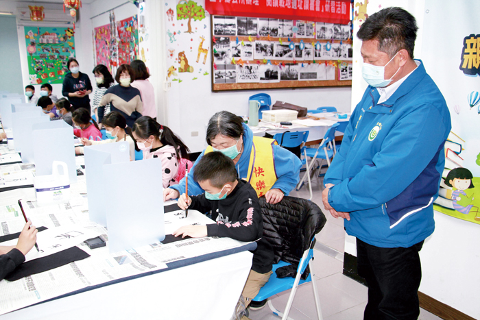 金寧鄉公所辦理110年「寒假書法揮毫研習營」活動,於1月26日起至29日展開四天研習活動,就讀國小一至六年級學童及親子參加,昨日鄉長楊忠俊主持開訓儀式,期勉學員要認真學習運筆要領,從認識小篆、隸書、楷書、行書、草書等各種字體的演變來欣賞書法之美;並透過影片的欣賞,瞭解很多成名的書法家他們努力不懈的故事,進一步認識書法這項傳統藝術。 響應春節民間習俗並發揚傳統書法藝術,金寧鄉公所假金寧鄉圖書館二樓辦理兒童書法研習活動,邀請金門縣書法協會指導,課程安排有文房四寶介紹、擺放與保養,傳講書法典故啟發書法思想,執筆法與坐姿(特別強調注重姿勢)、運筆法(手指、手腕、手臂的運動)、筆墨與紙的觸動-基本線條、筆劃練習(橫劃、橫豎劃、橫折劃、撇捺劃、右點劃、三點劃、豎勾劃、左彎勾劃習字),並於最後一天讓小朋友一展身手書寫春聯。讓大家練習以行書寫出牛年「年年有餘」、「好彩頭」等吉祥語。鄉長楊忠俊、主任秘書蔡世舜到場給家長及小朋友加油鼓勵。因應新冠疫情,參加學員上課時需全程佩戴口罩。 鄉長楊忠俊表示,辦理同學書法研習營的目的,主要是學生具有獨特的天賦,以互動且多元的教學活動,強化學生的學習動力,期許學生能透過書法的練習之同時掌握字形與筆順,養成良好寫字坐姿,了解書法漢字的文具由來,培養鑑賞能力與自我學習要求,並以人文藝術讓兒童盡情揮毫,書寫、畫畫技巧與祕笈全部傳承,帶領學童體會中國文字的博大精深,可增加學生的耐力,並培養成熟穩重的性格,希望因此認識書法所蘊含的藝術性與實用性,重新找回寫書法的熱忱。 楊忠俊也勉勵小朋友要有「力學不倦」的精神,充分發揮想像力,將書法跟畫畫藝術融合成創新的春聯,結業時可把自己寫好的春聯帶回家黏貼在門上,是很有意義的一件事。