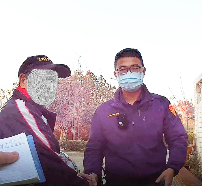 今年冬天寒流一波波,居家或外出都需注意保暖,金城分局金城派出所日前獲報在官裡一帶,有迷途老人需要協助,擔心其在外久處身體受寒,經警員協助助其順利返家。 金城分局金城派出所警員鍾凱博、陳岳甫日前擔服巡邏勤務,獲報在金城鎮官裡一帶,有迷途老人需要協助,因寒流來襲,天寒地凍,員警隨即趕赴現場。然由於報案者提供的地址位處偏僻,一時詳細地點難覓,經警方逐一詢問附近居民,終於尋獲倒在路旁精神慌亂的莊姓老翁(86歲)。經警方上前攙扶老翁於路旁休息,檢視其身上並無外傷,但詢問莊姓老翁姓名、住處時,都答非所問,所幸員警透過警政系統,終於查明老翁身分及住家。警方擔心老翁身體受寒並主動載其返回住家休息,該名老翁家人表示非常感謝警方的暖心之舉。 金城分局長胡淑淨表示,近來時有老人走失案件,加上寒流來襲,若未及時救助,恐生憾事,呼籲家中如有失智長者、精神疾病患者,應多留意其動態,並不定時幫忙拍照,紀錄常穿之衣著、特徵等、並協助配戴留有聯絡方式之飾品、證件或手機,也可向失智症協會登錄資料,申請「預防走失愛心手鍊」,或至金門縣警察局各分局偵查隊申請建立指紋檔。
