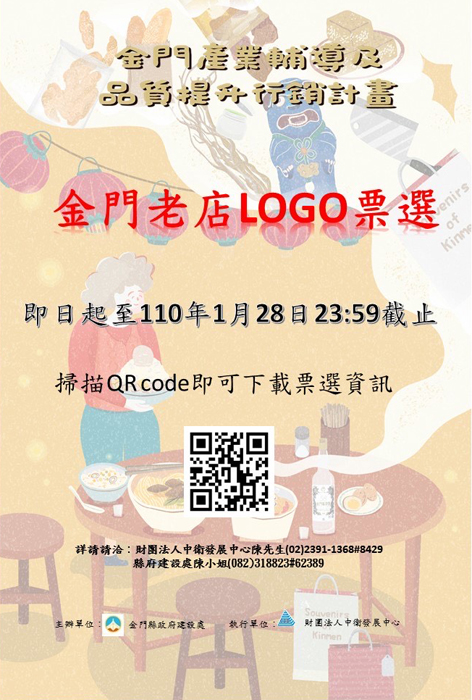 老店代表的是一個城市的名片!「金門老店」LOGO票選活動總計有來自全台十四件作品參與票選,投票時間自即日起開跑,投票次數越多,中獎機會越大,希冀藉由參賽者所設計符合金門老店的標誌(LOGO),共同喚起大家對於老店的記憶與特色,重視老店帶給地方經營的標誌。 金門縣政府持續推動「金門產業輔導及品質提升行銷計畫」,期透過發掘具有文化特色與發展觀光潛力的餐飲老店、美食伴手禮老店及烘焙糕餅老店,協助其空間優化、形象改善及應用科技導入來提升經營效率以及增進新客源。 在「金門老店」LOGO票選活動總計有來自全台十四件作品參與票選,作品分別是:1、金字招牌。2、金門風華。3、金門讚地。4、古燈金店。5、點亮金門。6、金戰老店。7、老店新意。8、饗味金門,老味巡禮。9、古磚彩金門。10、老店新風華 飄香好味道。11、金門老店 風華再現。12、金門寶典。13、點食成金。14、浯味俱全。 「金門產業輔導及品質提升行銷計畫」並透過故事化包裝提升整體品牌能見度和附加價值,藉由金門老店LOGO票選活動,引起大家對於老店的關注與嚮往。縣府建設處請大家踴躍至https://s.yam.com/rXfx9投票(網路投票成績僅占評比總評10%,網路投票排名,非「金門老店」LOGO徵選活動最終結果)。 縣府建設處說明,「金門老店」LOGO票選活動每人每日一票,投票次數越多,中獎機會越大,投票時間自即日起至一月二十八日二十三時五十九秒止,票選活動結束後由電腦隨機抽選十份一百元金門餐廳(雨川食堂)電子消費券。 另「金門老店」LOGO票選活動中獎名單,縣府建設處說將公告於金門美食讚粉絲團臉書或建設處臉書,如有任何疑問可於週一至週五上班時間(上午八時至十二時,下午一時三十分至五時三十分)撥打082-318823#62389,陳小姐。