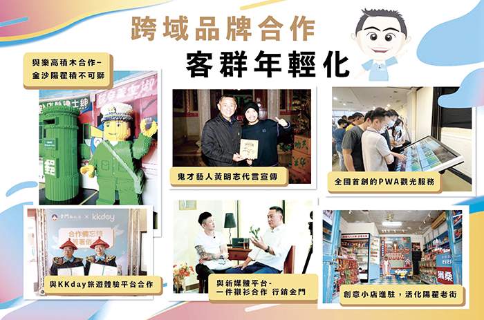 秘境旅遊 大膽來玩 金門限定備受遊客歡迎的大膽島登島旅遊,從108年3月正式開放營運至109年10月31日,登島遊客計3萬7,130人,門票收入約為3,324萬元,文創收入約計1,012萬元。在開放登島季節,遊客旅次維持長紅。 2020白色秘境單車海洋藝術季 為帶動烈嶼觀光人潮,藉由打造好玩、友善、特色景點,包括由知名藝術家創作的八大地景藝術裝置,以及結合自行車旅遊,讓遊客享受小金門生態、低碳、漫遊的輕旅行。 以「白色秘境」為主題,邀請8組藝術團隊創作8主題藝術裝置,活動期間參觀人數合計約5萬2千人次,烈嶼餐飲、旅宿及特產業產值成長20%~30%。 安心旅遊 創造56億元以上產值 為了鼓勵來金觀光旅遊,配合交通部的安心旅遊補助方案,縣府也加碼行銷,今年度安心旅遊方案,金門縣獲得全國第四名的好成績,預計此次活動至少帶動六十六萬人次旅客來金,以每位旅客平均消費為新臺幣八千六百零八元計算,預計創造近56億8千萬元的觀光產值。 花縣金門包機旅遊 為打造多元旅遊路線、擴增旅遊客群,訂定包機獎助要點,聯合國內縣市政府與業者,推動包機旅遊。今年執行3趟次包機旅遊,創造雙向每趟次滿載368人次旅遊,雙向合計1,104人次旅遊效益,同時第4~6趟次包機旅遊,亦將於110年1~3月陸續推動,朝定期化包機、固定航班方向推動,更為未來小三通復航,增添旅遊亮點。 跨域品牌合作 客群年輕化 如前所述,金門縣近20年來觀光客群主要以團客及陸客為主,國旅及年輕客群著力較少,因此,這兩年觀光重心在於調整觀光路線,透過跨域品牌合作及爭取年輕客群,讓金門觀光市場更為多元。 樂高積木×風獅爺-「金沙陽翟-積不可獅」 品牌旅遊計畫結合國際知名品牌樂高積木,邀請樂高認證大師為風獅爺文化季和金門戰地特色打造品牌街景,包括樂高積木風獅爺、老兵、復古郵筒、電影放映機等,並邀請鬼才藝人黃明志代言。整個計畫以金沙金東戲院、陽翟老街為主要展點,延伸至獅山砲陣地、山后民俗文化村等景點,除了帶動金沙及陽翟旅遊人潮,也成為全新打卡熱點,從9月27日開幕後,估計帶動3萬5千多人次旅遊效益。 陽翟大街協同發展觀光 為活化金沙陽翟街區,形成帶狀旅遊景點,同時融入社區、青年創業,公開徵求創意發想,截至目前為止已有18家投標,12家廠商審核通過,並陸續進駐陽翟街區,逐漸形成商圈模式,帶動社區、青創與景區之活化利用。 攜手國際知名旅遊體驗平台KKday 為加速推動觀光產業邁向數位化、國際化,縣府與國際知名旅遊體驗平台KKday簽訂MOU,為該公司首次與離島縣市合作,藉由KKday協助開創新通路、新營運模式,提供最即時、最便利的服務,聯手加速推動金門觀光產業數位化,走向國際化,為金門旅遊市場帶來新契機。 與新媒體平台「一件襯衫」合作 行銷金門 城市行銷方式多元,人物的介紹亦是行銷的元素與途徑,「一件襯衫」為近年來新興的新媒體平台,受眾組成已年輕世代為主,該平台利用人物採訪口述,訴說城市故事;影片拍攝內含金門景色人物,更娓娓道出金門島嶼城市的歷史縱深與獨特性,重塑觀眾對於金門島嶼的意象及想像,進而吸引受眾嚮往及前來觀光朝聖。 觀光服務數位智慧友善化 除了輔導觀光產業提升品質與品牌年輕化外,數位時代下的觀光服務智慧友善化更是不可或缺的,「金門陸海空交通資訊」Line@群組、及「金門行動旅服」PWA觀光服務系統,即是兩項創新智慧友善化服務。 「金門陸海空交通資訊」Line@群組 交通資訊提供的立即性,影響觀光目的地人流的移動。觀光處於去年推出新成立「金門陸海空交通資訊」Line@群組,只要民眾加入,並可即時得到台金飛機航線、小三通船班或大小金門渡輪,即時的開/停航及加班機等資訊。 「金門行動旅服」全國首創PWA觀光服務系統 縣府建置的「金門行動旅服」系統,是全國首創PWA行動旅服系統,遊客免下載,可透過手機或導覽機取得當下熱門活動、景點解說、美食住宿……等資訊,成為旅途中神隊友,可讓遊客感受更好的旅遊體驗。系統串連「吃、住、買、玩、賞、行」六大旅遊需求,整合在地各類店家服務,並提供中英日韓4種語言服務,希望國際旅客使用系統時,對金門更感親切,把金門行銷出去。 觀光景點設施優化與新設 在提升觀光景點及設施方面,觀光處爭取教育部體育署「前瞻基礎建設計畫」,辦理城區特色自行車道建置,完成金城鎮「濱海觀光暨文史訪遊自行車道營造計畫」建置,該路線並獲納入體育署「騎亮臺灣」18條票選亮點自行車路線。 其次,爭取交通部觀光局109年度體驗觀光地方旅遊環境營造計畫預算,辦理官澳灣口海灘、後豐港濱海及羅神父紀念公園等景點工程,營造優質景觀與生活環境。 總的來說,金門觀光市場面臨客源單一、品牌老化、體質孱弱與乘載限制、資源匱乏、人力外流與設施不足等七大困境,今年又遭逢新冠肺炎疫情與小三通停航影響,來年還可能面對兩大不確定因素,一是兩岸疫情看似趨緩,國際疫情仍持續蔓延,可能捲土重來,再次打擊剛復甦的旅遊市場景氣;二是兩岸政策不明,小三通重啟恐遙遙無期。儘管如此,縣府拚觀光、護產業的決心是堅定的,即使處在最不利的環境下,都會想方設法帶領產業突破困境,再造榮景。