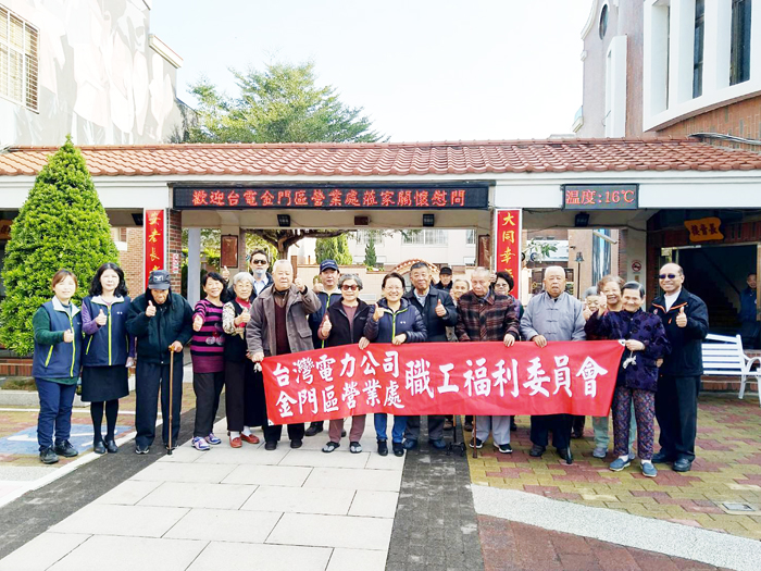 時值歲末年終,台灣電力公司金門區營業處與核能發電事業部除役選址溝通中心金門溝通小組共同合作,辦理寒冬送暖、關懷弱勢低收入戶活動,慰問大同之家、家扶中心、松柏園、福田家園,身心障礙者家長協進會等社會團體,急難戶、低收入戶等,共致贈新台幣24萬6000元慰問金,展現台電回饋及關懷弱勢民眾的心意。 台電為善盡國營企業責任、落實關懷地方弱勢族群,展開歲末年終前的愛心,公益關懷活動,由台電金門區營業處處長黃甘杏帶領幹部探慰大同之家院民,走訪縣身心障礙者家長協會、縣立福田家園、松柏園、家庭扶助中心,各贈送慰問金20,000元,表達對受扶助的弱勢民眾一份關心。 此外,台電也慰問5戶急難戶,各贈送10,000元,11戶低收入,各贈送6,000元及殘障6戶,各贈送5,000元,關心他們的家庭狀況,表達台電公司的一份關懷心意。也希望藉此關懷行動,拋磚引玉,讓需要幫助的人適時得到援助,使弱勢民眾能感受到社會的關心,也讓社會氛圍更加祥和溫馨。