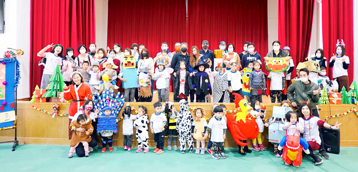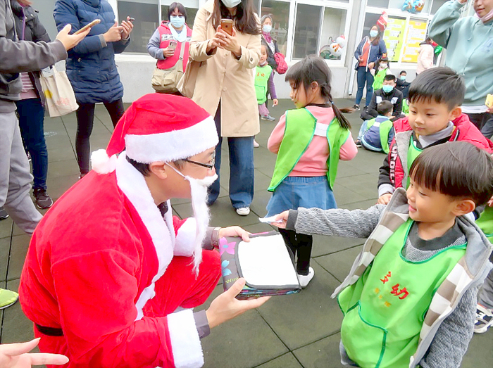 金城幼兒園24、25日舉辦學期教學參觀日,讓家長分日、分梯次參加,近距離感受家中寶貝的舞台魅力。 為紓緩室內群聚感染的可能性,金城幼兒園分二日舉行教學參觀日活動,首日是中班的小朋友變裝秀登台,不少家長也變裝和小朋友一起走秀。馬力歐、米老鼠、米妮、皮卡丘、胡迪、蜘蛛人、美國隊長、綠巨人、炭治郎、禰豆子……在舞台上可看到各種動漫作品中的人物扮相;園長許碧華也扮裝成動漫《鬼滅之刃》裡的人物竈門禰豆子,讓所有家長及小朋友大為驚訝。校長表示,小朋友們的反應都好有趣,年紀偏小的孩子就不知道校長在玩哪齣了。 次日是大班的聖誕舞會,各班依序登場,可愛的舞蹈動作,精心的舞台裝扮,讓台下的家長們成為最忠實的粉絲,相機的快門聲一直響個不停。許園長也扮妝成聖誕老人,發送小禮物給各班的小朋友們。 許碧華指出,今年由於新冠病毒的影響,自12月1日起公共場所防疫措施趨嚴,因此每年在耶誕節例行的大班小朋友探訪大同之家長者的關懷活動取消,改成讓小朋友在園內的舞台上表演。 許園長提醒小朋友要感謝父母能特地參加大家的活動,也感謝因為家長們的參加,讓學校舉辦的活動顯得更有意義,謝謝家長的陪伴,讓孩子有著不一樣的節日。