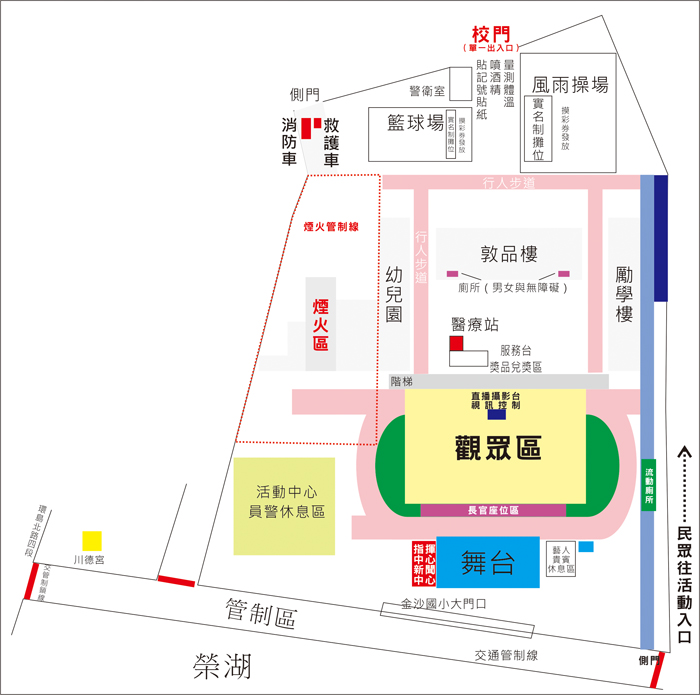 揮別2020迎向2021,金門跨年晚會首度移師金沙鎮舉辦,以「金喜臨門魅力犇放」為主題,於金沙鎮金沙國小操場舉辦,晚會透過海選在地藝文團體,並邀請許多知名藝人現場演出,主辦單位準備長達8分鐘煙火,精彩可期,還有摸彩活動,摸彩券除了透過夾報方式,活動當日晚間6時開放入場,入場時同時發放摸彩券及加油棒,發完為止。 金門縣文化局表示,因應疫情升溫,將會採取高規格的防疫措施,晚會採單一出入口由金沙國小北面門口(金沙鎮公所對面)進出,進場時應噴酒精進行手部消毒、全程戴口罩、量體溫與實聯制登記;為實聯制登記順暢性,籲請民眾務必攜帶縣民卡或身分證,以利實聯制登記作業,同時開放網路線上實聯制登錄,只要民眾自行在網路上登錄,抵達會場秀出登錄完成頁面,即可快速入場(網址:https://forms.gle/khiV4oebSR2e55h99)。參與民眾也可先行於紙張填寫實聯資訊,於活動現場提供予服務人員,請民眾全程攜帶手機接收疫情訊息,場內除補充飲水外禁止飲食。 晚會活動將透過高點綜合台與金門名城有線電視直播,網路直播將透過壹電視Youtube「壹直播」(www.youtube.com/watch?v=08SItMRSC0o&feature=youtu.be),歡迎民眾在家線上看跨年。 晚會勢必會為金沙鎮帶來大量車潮,主辦單位與金門縣警局金湖分局繃緊神經,將榮湖周邊道路,規劃為汽車停車場,金沙鎮公所旁廣場,規劃為機車停車場,活動週邊道路也會有引導牌指引活動會後車流疏散,主辦單位也將安排接駁車返回金城及金湖車站;並安排接駁船配合晚會結束時間送烈嶼鄉親返家,預計於1月1日00:40發車,烈嶼接駁船會配合接駁車到達時間開船(接駁船若遇海象不佳,將於當日下午4點公告船班資訊)。 此外當天公車處也會加派班次,運輸參加民眾,包括山外到沙美(金沙)18路、金城到沙美(金沙)5路公車。搭乘大眾運輸工具需全程戴上口罩。 活動將配合中央防疫工作,並視疫情狀況調整活動規劃,相關活動訊息可上金門縣文化局官網(http://cabkc.kinmen.gov.tw/)及藝起金門臉書(https://www.facebook.com/AAE28)查詢。