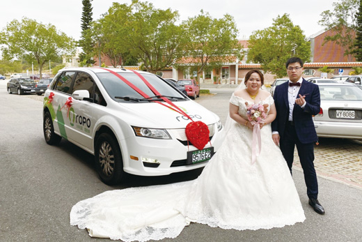 好一場低碳婚禮 環保人員以電動車辦嫁娶