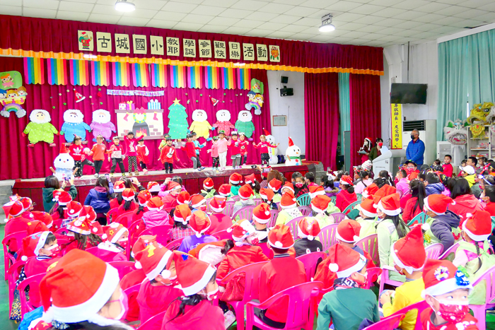 古城國小12月25日舉辦「109學年度上學期教學參觀日暨耶誕節慶英語教學成果發表會」,計有全校國小部及幼兒園師生員工221人及學生家長約100人參加。 當日上午08:3~09:10首先在各班舉行教學參觀活動,由學生家長自由入班參觀老師教學;接下來09:20~10:20則在該校活動中心舉辦歡度耶誕節慶英語教學成果發表會。發表會結束後,最後11:10~11:50由各班導師主持,在各班教室進行親師生面對面座談。 成果發表會由該校爵士樂團開場表演後,接著各班輪番上台表演耶誕有關的英語歌曲及唱跳律動節目,將活動氣氛炒熱至最高點,與會家長反應甚為熱烈,也感染學子歡欣迎耶誕的喜樂氣氛。 該項活動係於耶誕節當天12月25日上午登場,由該校研發組長吳真老師及英語老師潘意馨二人協同主持。透過耶誕有關英文祝福語及短劇、歌曲、唱跳律動等教學,將二週來的耶誕節主題教學,結合表演藝術做一個完整的教學成果展現,讓在場的家長了解孩子在校學習英語的情況與氛圍。 成果發表會首先由爵士樂團501班辛濡筵同學以爵士「鼓」表演活動「少年」拉開了序幕,接著由幼兒園大班話劇表演「Merry Christmas Ya!」、中班表演的「Christmas Suite」、小班表演的「There is no Santa Claus」、金水分班的「Dream go! Go !go」、國小部601班表演Christmas Clap」、 501班表演「Last Christmas」、401班表演「Jingle bell dance」、301班表演「The Dancing Christmas Tree Song 」、201班表演「Santa Claus」、101班 表演「Santa Claus is Coming to Gu-Cheng」。各班精彩的表演把耶誕節歡樂的氣氛炒熱到最高點,校園裡充滿孩子過節的歡樂聲與家長的讚嘆聲,「孩子表現真是太棒了!」。 古城國小校長楊成業表示,該校配合學校109學年度英語教學計畫,在教導處規畫帶領下,古城教師團隊配合耶誕節主題教學,結合各領域規劃一連串的教學活動,包含「資源回收物從事創意耶誕情境佈置」、「耶誕節慶主題融入英語教學活動」、「英語歌曲唱跳」等活動。希望結合英語教學活動,鼓勵並培養學生學習英語的興趣與方法、透過英語歌曲教唱,提升學童相關英語能力及素養。藉由耶誕節節慶教學的體驗活動,協助學生認識與體會外國不同的文化與習俗,進而擴展學生的國際觀,鼓勵學生激發創造力,發揮及運用所長。