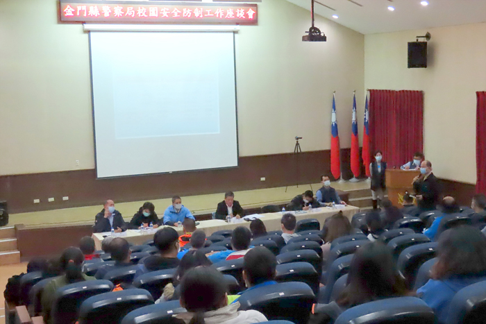 縣警局召開「校園安全防制工作座談會」,由該局主任秘書李智源率警局與分局相關主管,向學校、家長會代表說明該局協助強化校園內外周邊安全維護機制及勤務作為,聆聽與會代表對安全學習環境、上下學安全走廊的意見與建議,並表達警方維護校園安全的決心。 鑑於臺南市歸仁區學校周遭發生馬籍女大學生命案,為使學校、學生、家長安心,金門縣警察局特於該局四樓視聽室召開「校園安全防制工作座談會」,由主任秘書李智源主持,金城分局分局長胡淑淨、金湖分局分局長何明祥、刑事警察大隊大隊長陳志埕、少年警察隊隊長李鑫鍇等,以及近60名的學校、家長會代表出席。 座談會開始由金城、金湖分局、刑大及少年隊分別就「協助各級學校校內及通勤路線沿線安全維護措施(監視錄影、路燈照明……)情形;與縣府教育處、各級學校橫向聯繫及安全改善情形;校園周遭(含內外、周遭)加強巡查情形;結合民力(教育機關、學校駐衛警、保全人員、社區巡守隊及協勤民力等)加強巡查;配合教育部「各大專院校與警政機關合作建立巡查熱點」盤點情形;婦幼及校園安全宣導情形等」、「統合警力(少年、婦幼及各分局)科偵能量規劃辦理情形」、「與縣府教育處、校外會、各級學校橫向聯繫及安全改善情形;婦幼及校園安全宣導情形;主動聯繫學校、家長會,召開校園安全防制工作座談會情形。」等提出報告與說明。 與會代表關心校園、學子安全議題發言踴躍,其中銘傳大學金門分部彭教官關心「隨時代的變化校園的安全面向、維持校園內安全的關鍵人力、希望警局可以協助學校改善學生的紀律、提高學校的見警率、建議教育處及教育部將校園安全列入師資培訓的必修課程,讓所有擔任老師的同仁能夠有校園安全危機處理的能力、各校應向家長說明、協助有關霸凌及反霸凌的議題及校園網路監控安全上網環境等等。」金門農工生輔組陳組長則關心該校學生校外停車所引發的問題,希望警察能想出方法解決及學生使用網路線上賭博的問題;金湖國小家長會何會長希望警方的護童工作應普及中、下午放學時段及該校臨近鎮公所停車場的監視器設置,以維護校園安全;金門農工家長會黃會長則希望警方加強對於學生毒品、賭博案件之查緝;金城國中楊主任籲請金城分局加強該校放學時段學生安全及學校周邊民族路與民權路的三叉路口違規停車及未依規定禮讓行人之取締告發,以免發生危險。 與會報告相關單位及縣政府教育處、教育部金門校外會等亦就與會代表們的發言內容,即時回應,充分溝通,共同期待建構更安全的校園環境。