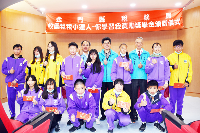 金門縣稅務局於昨(11)日假縣立體育場視聽室辦理109年「校園租稅小達人│你學習我獎勵」獎學金頒贈儀式,共頒發國中組1,000元獎學金20名,國小組600元獎學金20名,副縣長黃怡凱頒獎時也表示,稅收是國家財政的根本,是國家推動各項建設所需要的經費來源,納稅是國民應盡的義務,誠實繳稅、正確納稅,國家才有財源可以推動建設、辦教育,國家才能穩定的成長進步。 昨日上午九時起在縣立體育場視聽室舉行,由副縣長黃怡凱主持,稅務局長翁自保、副局長董梨卿,科長葉于綺等人出席,並邀請教育處督學楊恭墉、學校校長、師生等共同參與。 副縣長黃怡凱致詞時表示,校園租稅小達人係由學生自行線上學習,觀看宣導影片,作答測驗題,今年是第2年舉辦,感謝各校協助推廣,今年國中及國小學生共有2,479人次參與,但需5題測驗題全部答對者,才可參加抽獎,經排除答案錯誤及重複者等,結果計有國中組203人、國小組558人,共761名學生可參加抽獎,較108年278名,成長173.74%。租稅小達人獎為人人有獎,獎品已分送各校;而獎學金部分,稅務局於上月19日公開抽出,國中組1,000元禮券20名;國小組600元禮券20名,共40名,中獎率為5.26%,也恭喜在場得獎的同學。 黃怡凱強調,稅收是國家財政的根本,是國家推動各項建設所需要的經費來源,納稅是國民應盡的義務,合法節稅更是大家的權利,誠實繳稅、正確繳稅,讓國家有財源可以推動建設、辦教育,這樣國家才能穩定的成長進步。 每人一輩子都離不開繳稅,一般大眾覺得稅法艱澀難懂,但稅務局以觀看動畫影片方式,寓教於樂,讓稅法與大家更親近。黃怡凱表示,本活動鼓勵學生了解我國租稅,建構租稅基礎觀念,達到扎根租稅教育,讓下一代皆有誠實納稅觀念,更有合法節稅的知識,並將正確的納稅知識讓父母親與家人瞭解,也是活動最大之目的。 稅務局表示,109年校園租稅小達人活動,參加人數最多的是中正國小277位同學,其次為金湖國中141位同學,參加率最高的是上岐國小達97.14%;獎學金得獎人數最多的是金湖國中共13位同學,其次是金城國中7位同學,中獎率最高則是古寧國小,共4位同學可參加抽獎,就有2為同學抽中獎學金,中獎率達50%為最幸運的學校。 稅務局長翁自保表示,本活動將持續辦理,今年感謝各校師生、家長參與,希望明年有更多的獎項,鼓勵更多同學參加,只要參加就有機會把獎學金領回家。