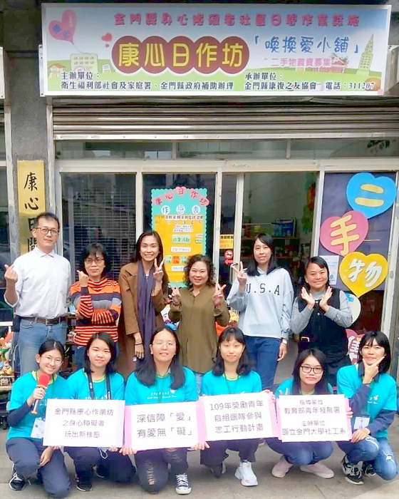 國立金門大學為關懷弱勢與實踐大學社會責任,該校社會工作學系舉辦「有愛無『礙』│金門縣康心作業坊之身心障礙者玩出新樣態」活動,邀請金門第一家身心障礙者社區日間作業設施—康復之友協會附設康心日間作業坊學員參與活動,教育部青年發展署朱紅溱專員特地來金門加油打氣。 金門大學校長陳建民表示,該校非常注重學生專業能力的培養,並力行實踐大學社會責任,關心公共議題與善用專業回饋社會,解決地方社經發展議題。本次活動中,社工系師生利用專業、熱情與勇氣,將課堂的學習成果轉化為利他行為,積極協助社區居民與弱勢者,一起讓社會發展更美好,具體實踐該校「落實全人教育,為社會培育理論與實務兼具與關懷地方的知識份子」的辦學理念。 金大指出,該校社工系童小珠副教授指導本計畫的執行,她表示,本次活動在社工系師長的指導和鼓勵下,該系大三劉沛宇、鐘雯郁、陳羿蓉、盧姮安、鍾茹欣與李巧馨等學生,向教育部青年發展署提出「青年志工自組團隊行動計畫」,並獲錄取,學生「從做中學」,透過大三方案設計與評估的課程,學習撰寫計畫與辦理活動,每一次的討論、修正與改善,都是成長! 金門康復之友協會總幹事王志賢指出,金大師生為康心作業坊學員規畫一系列好玩、有趣的活動,在社工系學生講解和陪伴鼓勵下,學習製作相框、布丁和珍珠牛奶等手藝,在完成作品後,學員紛紛露出開心、滿意的笑容,直說好棒、好喜歡這次的活動安排。許多金大學生則表示,執行志工行動中充滿感動,看見學員們興奮、快樂的表情,就是自己最大的滿足。 金大表示,參與計畫的學生將團隊命名為「深信障『愛』」,期望與學員們互相學習與成長,讓社會大眾看到身障者的潛能與發展性。執行活動過程中,感謝康心日作坊社工與教保員提供場地及專業建議和行政協助,更感謝教育部青年發展署提供實際執行計畫的機會,讓本次活動充滿的正能量。