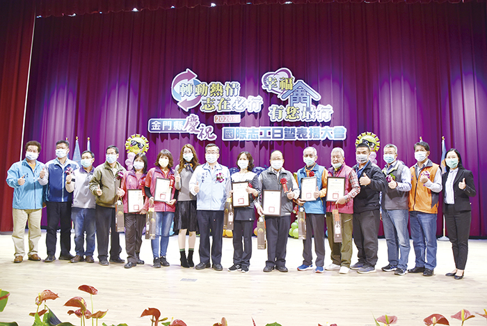 金門縣慶祝2020年國際志工日暨表揚活動於昨(5)日上午在社會福利館隆重舉辦,現場約有690人出席參加,由金門縣政府秘書長陳朝金主持,邀請志工創意隊呼表演共同慶祝志工日,同時頒獎表揚13個績優志工團體、191位得獎個人,並為五支新成立志工隊授旗與祝賀,期勉及感謝志工轉動熱情,讓金門更幸福更美好。 金門縣政府慶祝2020年國際志工日暨表揚活動,由109年活力新金門│志工創意隊呼‧無限熱情啦啦隊競賽第一名「金鳳凰志工隊」帶來隊呼表演展現志工活力,為活動揭開序幕,並由縣府秘書長陳朝金轉頒衛生福利、內政業務志願服務獎勵;績優目的主管機關、社政志工運用單位、績優志願服務團隊、再由表演競賽第二名「關新志工隊」帶來精彩的表演,接續頒發志願服務績優、優秀人員、再來由第三名表演團體「岐心志工隊」帶來志工隊呼互相呼應主題,最後頒發金門縣志願服務獎勵獎項,以及為五支新成立志工隊授旗。 昨日到場參與貴賓包含行政院金馬聯合服務中心執行長翁明志、楊縣長夫人張婭玲、金城鎮鎮長李誠智、金湖鎮鎮長陳文顧、金沙鎮鎮長吳有家、金寧鄉鄉長楊忠俊、金沙鎮秘書許萬恭、烈嶼鄉秘書蔡弼光、環保局局長楊建立、衛生局副局長李金治、金城鎮代表會主席陳天成、體育場場長蔡木川及大同之家主任董燕輝、生命線協會理事長許雪芳及社會處李廣榮副處長和社行科方小萍科長等共襄盛舉。 陳朝金代表縣長楊鎮浯致詞時表示,透過活動展現我為人人、人人為我的精神,曾經參與及奉獻者都是我們志工,希望大家都能共同投入各項活動及服務。志工走出家庭,奉獻自己的時間和一份心力,用慈悲的心及善念服務人群及弱勢,讓社會充滿溫馨。他也指出,本次志工日活動的標語「轉動熱情志在必行│幸福金門有您最行」,就是展現我們志工的熱情,肯定志工及各部門對幸福金門無私的奉獻,特別感謝全體志工與志願服務者及團體,更肯定得獎團體單位及個人。陳朝金也期許未來縣府、公所各單位及各團隊大家一起共創志工價值,讓志工精神在金門發光發熱,帶動更多人一起加入志工的大家庭,促使金門更好、更幸福。 昨日表揚名單如下: 衛生福利部志願服務獎勵:金質獎:呂團治、鄭明火、楊昭華、蔡素芬、黃秀英。銀質獎:楊彩錦、吳阿麗、許绣玲、洪夢市、許幼數、胡黎治、張水冷、鄭明蔭、連意玉、黃秀齡、謝呂招治、董耀樂、劉連治、方寶珠、張翠敏。銅質獎:林翠蓮、楊配治、楊玉葉、陳玉玲、李秋鳳、陳梅美。 內政部業務志願服務獎勵:金質獎:吳彩芬、許玉羨。銀質獎:張彩蓮、張馬珍、楊恭同。銅質獎:黃連忠。 109年度志願服務績效評鑑(目的單位):第一名:金門縣衛生局。第二名:金門縣消防局。第三名:金門縣環境保護局。優勝:金門縣政府教育處、金門縣文化局、金門縣政府政風處。 109年度志願服務績效評鑑(社政單位):第一名:大同之家;第二名:金湖鎮公所;第三名:金寧鄉公所。 109年度績優志願服務團隊:第一名:金寧衛生所志工隊。第二名:山外社區綜合福利服務隊。優勝:金寧鄉榜林社區發展協會志工隊、金湖警察志工分隊。 109年度績優(優秀)志願服務人員:績優人員:李錫盛、蔡昭德、葉瑞意、葉淑貞、顏亞妹、楊查某、陳麗貞、黃明鸞、林妙芳、蔡麗娟。優秀人員:吳思彤、趙愛貞、許秀菁、陳錦梨、陳麗玲、吳翁秀珠、董彥龍、陳秀香、陳雅芬、董雅萍、陳秀玉、吳福氣、林麗娟、張琼英、王藝雲、陳淑嬌、陳麗貞、徐進財、莊美蘭、許雪華、翁桂治、黃榮國、莊寶珠、王金包、陳蓮、翁淑麗、黃麗婷、李金環、楊肅卿、李彩秀、陳金羡、方刊治、蔡錦清、呂淑瓊、吳啟榮、蔡淑青。 金門縣志願服務獎勵: 金牌獎:何美津、蔡鳳雛、周能珠、周瓊珠、周愛寶、陳能鶴、劉秀華、黃金鳳。 銀牌獎:張彩蓮、楊恭同、董耀樂、董彥龍、許淑真、許開山、李金翠、王淑卿、李秀和、王黎華、陳呂淑女、呂世壽、葉鳳嬌、鄭愛英、楊水錦、楊秀招、黃明愛、黃明麗、陳翔景、呂圓粒、吳美玉、吳寶卿、李素琴、陳楊蘇治、李金華、林金鐲、張水冷、鄭明蔭。 銅牌獎:王彩華、陳能美、林明麗、林沛綺、黃連忠、許秀菁、林金羡、陳豐姿、陳彩仙、黃秀治、莊麗芬、薛素蓮、吳绣媛、張美彩、陳美梨、陳麗真、陳采寧、王玉鳳、周惠琴、林美龍、薛成吉、洪碧鳳、林豆、洪玉音、蔡淑慧、吳信榮、洪天寶、蔡淑媛、李素治。 榮譽獎狀:陳寶珠、李清庭、莊曉芸、李錫威、李能惠、董雅雯、吳思彤、彭淑貞、李增椿、董雅萍、林金月、莊麗嬌、李美婷、陳麗金、李秀治、林亞春、許彬彬、陳銘助、林明淵、許明娥、陳雪華、黃麗婷、蔡福生、蔡麗明、李開陣、李林阿妹、楊肅卿、董秀全、林春桃、方清池、林妙芳、洪有利、許瑛卿、洪珮琦、洪敏娜、洪淵國、洪陽、洪萬宗、洪麗鵲、郭秋華、蔡明珠、羅建華、黃珮雯、蔡錦清、林美珠、陳寶珍、許釗玢、許美緣。 109年新成立祥和志願服務隊授旗共5隊:東村社區志工隊、西堡志工隊、西浦頭志工隊、青嶼社區志工隊、黃厝社區不多志工隊。