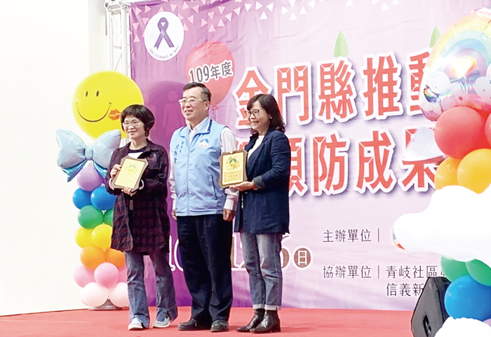 金門縣政府為推動性別暴力社區初級預防工作,昨(6)日上午9點至12點,在金門縣立體育館舉辦社區初級預防成果發表會活動,廣邀全縣居民共同響應反性別暴力議題,透過防暴暖身帶動唱、舞蹈表演、行動劇、有獎徵答及各網絡單位設攤宣導,期待喚起民眾對性別暴力議題之重視。 縣府秘書長陳朝金在社會處長董燊陪同下,代表楊鎮浯縣長出席並頒獎績優社區,與會嘉賓還有金城鎮鎮長李誠智、社會處婦幼科科長李品萱、社行科科長方小萍及各社區理事長與志工等人,陳朝金致詞時,特別期許性別暴力防治觀念要普及化並向下扎根,藉以打造「零暴力、零容忍」的無暴家園。 董燊表示,縣府團隊在楊縣長帶領下一直很重視溫馨社區的營造,金門縣政府自106年起積極配合衛生福利部推展「家庭暴力社區初級預防宣導計畫」,迄今已輔導培力7個防暴種子社區,其中代表本縣參加衛生福利部「街坊出招」社區防暴創意競賽之社區迭有佳績,107年忠孝社區與108年青岐社區更分別榮獲全國第二名及第四名殊榮。今年因受新冠肺炎(COVID-19)疫情影響,「街坊出招」活動被迫停辦,為呈現社區推動計畫成果並表彰戮力投入相關宣導活動的社區人員,縣府特地舉辦本次成果發表,邀請本年度執行計畫的烈嶼鄉青岐社區發展協會、金寧鄉盤山村社區發展協會及金湖鎮信義新村社區發展協會共同參與。 活動除了由社區自己擔任主角,展現防暴宣導成果,社區居民更發揮集體創意與活力,用行動劇的方式,以及貼近社會大眾日常生活的演出內容,強力放送和宣導性別暴力防治觀念。 值得一提的是,活動現場還集結警察局、衛生局、社會處等防治網絡單位,搭配有獎徵答等互動式宣導,讓家暴防治更生活化,也讓社區彼此互相交流與觀摩學習,共同投入性別暴力防治的行列,減少性別暴力案件的發生。