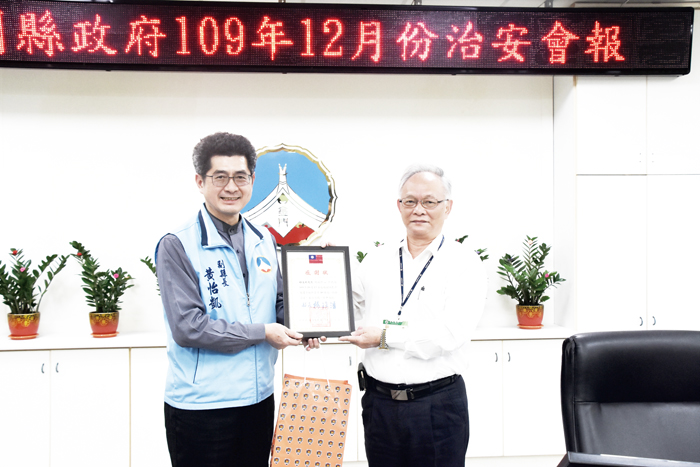 金門縣政府召開109年12月份治安會報,由副縣長黃怡凱主持,會中並頒發金門縣「金融機構行員」獎狀,感謝台灣土地銀行金門分行新市里辦公處行員賴文彬及黃文怡,成功協助攔阻民眾免遭詐騙,幫客戶守住資產。會中除了聽取縣警局9、10月治安工作報告,及建設處12月工作報告,也由環保局和衛生局分別就「公有掩埋場管理措施」及「毒品危害防治」議題進行專案報告,另外也透過意見交換及臨時動議,希望與會的各治安單位再接再厲,斷絕危害金門毒品犯罪因子和通路,並透過宣導及毒防舉措,保障地區民眾財產和生命健康。 縣警局在治安工作報告指出,本期全般刑案發生156件,破獲159件,破獲率102%。發生案類以詐欺(占19%)、毒品(占18%)、公共危險(占17%)為主。 破獲案類以詐欺(占21%)、其他(占18%)及毒品(占16%)為主。警方說明,109年依序以詐欺、毒品、公共危險、其他案類為主要案類,合計占全般案類72%,無異常增減情形,轄區治安狀況維持穩定。檢視發生數增加案類,增加件數前3多案類:毒品、其他及妨害自由。檢視發生數減少案類,減少件數前3多案類:公共危險、竊盜、偽造文書。 另109年9-10月詐欺案發生28件(與108年同期相比減少1件)、破獲數33件。詐騙集團以網路電話、通訊軟體等方式聯繫及以遊戲點數、超商代碼等方式付款,為目前偵查瓶頸。警察局將自人頭帳戶案件,循線追查詐欺集團成員(如車手、主謀等),並結合「科技偵查」能量,突破當前困境。 109年9-10月發生竊盜案13件,較108年同期(19件)減少6件。109年9-10月破獲竊盜案13件、較108年同期(19件)減少6件。針對未破案件,警察局已加強查訪積極情資蒐報,務求速破案。 此外,針對毒品防制,109年9-10月發生毒品案26件,較108年同期增加12件。109年9-10月破獲毒品案26件(含赴臺向上溯源件數)、破獲率100%,近來縣警局向上溯源策略落實,除積極赴臺追查毒品上游,未來也將持續降低轄內毒品供應量、遇案追緝上源,阻絕毒品於境外。 本期金門地區查獲毒品犯嫌28人次,較去年同期增加6人次。查獲犯嫌職業以工(營建工、體力工)、無業計19人次所占比例(68%)最高。毒品犯嫌年齡層以19~30歲14人次所占比例(50%)最高,本期查獲1名未成年涉毒案件。 另109年9-10月發生公共危險案26件,較108年同期(35件)減少9件。酒後駕車(25件)佔96%為主要發生類型,發生件數與108年同期減少5件。縣警局將持續加強反酒駕宣導,並於易酒後駕車時段規劃綿密取締勤務,以維護用路人安全。 而針對加強地區重點刑案偵查作為及未來治安工作重點,縣警局指出,在毒品查緝方面,由於新冠肺炎疫情趨緩,生活防疫措施鬆綁,為免毒品人口趁機「解封」犯罪,造成治安破口,該局除持續落實建構反毒通報網、加強查緝少年藥頭及向上溯源供毒藥頭等重點工作,宣示維護國人健康之努力及政府打擊毒品之決心,「毒品零容忍」,絕不讓犯罪分子心存僥倖,趁疫作亂。也持續向上溯源擴大偵辦,揪出隱身幕後之不法販毒集團,阻斷毒品來源。另針對各類少年涉毒及少年藥頭案件,深入分析,有具體犯罪情資立即報請檢察署檢察官指揮偵辦,以遏制不法分子犯罪意圖,使毒品犯罪遠離社區及校園,共同維護無毒家園,使地區人口免受毒害。 另在積極防制詐欺犯罪方面,縣警局表示,本年度因新冠肺炎疫情關係,致使轄內詐欺案件較去年增長近40件,主要增加詐騙手法以「假投資、網路購物詐欺」為主,近期該局辦理多場防制詐騙宣導作為,9、10月詐騙案件已明顯減少。未來將持續落實轄區攔阻詐騙機制,於金融機構、ATM及超商張貼反詐騙文宣,並向行(店)員加強宣導,如有民眾高額提(匯)款、購買高額遊戲點數或神情異常情形,立即通知警方到場,以防止民眾被騙。而對於目前偵辦詐欺犯罪困境也將積極突破,藉由偵辦人頭帳戶案件,循線追查其他詐欺集團成員(如車手、收簿手等)及機房(水房)處所,並善用科技偵查,蒐報犯罪集團線索,以有效打擊詐欺集團。 至於在檢肅竊盜方面,本期竊盜案件發生13件較去年同期減少6件,之前因少數民眾於地區大型賣場購物時因一時貪小便宜,而將日用百貨利用衣物掩竊案件,在警方宣導下已減少,縣警局將持續要求各單位應加強掌握慣竊行蹤,並利用查訪、巡邏時機適度關心及約制,降低犯罪機率。另汽機車竊盜案件本期未發生,惟本期發生1件民眾將金門高粱酒置於貨車遭竊嫌鎖定進而輕易竊取得逞,未來應加強宣導民眾(酒商)勿將酒屯積於貨車上,並提醒應隨時掌握車輛狀況,以免遭竊。警局將持續利用社區治安座談會時機,宣導守望相助觀念,對於社區內可疑人員保持機警,並住戶間相互提醒、照看,提升竊賊行竊難度。 而在校園維安方面,警方近期針對轄內各級學校全面強化校園安全維護工作,持續與學校密切聯繫,務求於事件發生之初立刻通報,縣警局也秉持「即時反應、迅速處理」之原則,深入查處遏止危害擴大,並於近期內協助各級學校再次執行校園安全環境檢測評估工作,檢視校園及學生宿舍周邊監視器及照明等安全設備是否完善,以期發掘校園內外潛在風險,並通報相關權責單位儘速改善,提升校園安全。