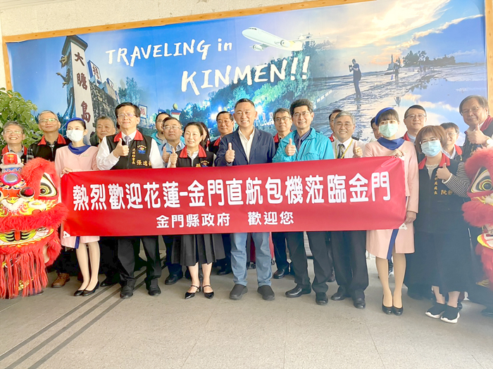 金門和花蓮雙向包機又再度啟航,金門縣長楊鎮浯昨日中午到尚義機場迎接花蓮縣長徐榛蔚率領縣府局處單位首長到金門交流。楊鎮浯、徐榛蔚相見歡,希望兩縣的努力能促成金門—花蓮航線定期航班的直飛,方便兩地鄉親的往來,並吸引遊客觀光旅遊。 立榮航空包機於昨日上午8時55分從金門出發,滿載184位金門鄉親,約於10時抵達花蓮。稍後,10時55分從花蓮啟航的包機,同樣搭載184位乘客,包括花蓮縣長徐榛蔚,率領縣府秘書長張逸華及15位局處單位首長等人,約於12時許抵達金門尚義機場。金門縣長楊鎮浯帶領副縣長黃怡凱、秘書長陳朝金、觀光處長丁健剛等主管到機場迎接,縣府並在航空站舉辦迎賓活動,以舞獅熱情迎賓。隨後,兩縣旅客各自展開3日遊。 徐榛蔚縣長指出,金門和花蓮雙向包機於今年十月底首航,由楊縣長帶領金門好朋友到花蓮觀光,也和花蓮縣政府進行城市和縣政交流。上次會談中,有關農業的部分,因為花蓮縣是全國有機耕作面積最大,而且是有機首都,擁有非常優質的農特產品,這一次回訪,希望在農業觀光、農特產品的駐點等有更多的合作。在觀光的部份,因為花蓮縣擁有非常豐富的海洋資源,是觀光城市,當然也希望金花航線、花金航線能夠成為長久定期的航班,這對於金門長久以來直接飛台中、台北、高雄,沒有直接飛東海岸,其實是非常具吸引力,希望開發一個新的航線。而花蓮到金門,也是一趟遙遠的距離,有非常多的子弟在金門、花蓮就業、就學、從軍,無論是訪親、探訪或觀光旅遊,這也是一個非常大的契機。 徐榛蔚也表示,金酒創造非常多的經濟奇蹟,以及嘉惠整個金門縣的政策推動,還有社會福利和建設;而楊鎮浯縣長特別推薦金酒,金酒有很多各縣市合作的紀念酒,且在這次防疫期間,金酒也對本島做出很多的貢獻,此趟金門行程,會去參觀金酒公司。同時會向楊縣長請益有關於地方的稅收以及地方的發展,是不是可以來共同合作。 徐榛蔚指出,花蓮有全國唯一的海洋深層水,而海洋深層水在整個釀酒的過程中是可以加速發酵的;又因為它的水分子很小,釀出來的酒是更香甜,希望透過花蓮自有的海洋深層水和自有的農特產品來製酒,因而希望能跟金酒來學習。另外金門又是閩南文化的重鎮,也會務實的去巡禮,看看閩南文化如何能夠在金門發揚光大。 徐榛蔚表示,她和鎮浯都是新同學,也都在學習,這也是一趟學習之旅,像上次楊縣長率團到花蓮,也做了很多交流,分享成功的經驗。徐榛蔚說,每一個地方鄉親的需求不同,政策的擬定跟地方的鄉親是相輔相成的,楊縣長也是以民意為最高的施政政策推動。兩縣有很多方面都可以互相學習交流,這是此行的意義。 縣長楊鎮浯表示,他非常高興花蓮徐榛蔚縣長帶著縣府同仁,還有近一百八十位的花蓮鄉親到金門,是金門和花蓮推動包機的具體成果展現。楊鎮浯說,在陸續推動包機過程中,發現兩地鄉親對包機的反應都非常熱烈,金門除了飛台北、台中、嘉義、台南和高雄等台灣縣市航線,往東海岸的航線,目前的詢問度還有政策走向,都希望讓它能夠成為一個相對常態的做法,嘉惠金門以及東海岸的台灣本島鄉親。 楊鎮浯指出,金門處在兩岸之間的門戶,金門應該是要扮演一個樞紐的角色,所以很樂意在這些航線上盡量來拓展,方便兩地旅客的往來,也能吸引遊客觀光旅遊。 楊鎮浯說,花蓮是全國土地面積最大縣市,榛蔚縣長在整個施政當中,滿意度以及花蓮鄉親對她的肯定,在全國都是名列前茅、首屈一指,希望透過交流、學習,也透過直航的方式,不管是鄉親可以有更好的旅遊,或者是產業可以有對接,包含農產品、金酒,花蓮最有名的有機農業,都可以相互來配合,相互來互補,增進兩縣的交流和合作,對兩地都是好的一件事。 兩縣也會進行「縣政合作」交流座談,並考察相關場域,為兩地合作帶入新方向,創造新未來。