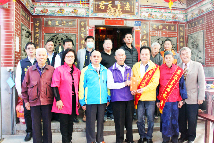 金寧鄉昔果山法主天君廟奉祀張劉章三公法主千秋,昨日舉行平安福醮慶典活動,金門縣議會議長洪允典偕議員王碧珍、李養生、楊永立、石永城、陳志龍、洪鴻斌前往參拜致賀,也祈求神明護佑鄉里風調雨順,百姓安居樂業。 目前,值逢議會定期會開議期間,洪議長和議員昨天在議會秘書長陳建興、秘書朱國華、邊金靜、人事管理員翁文明及秘書陳成勇等多位主管及同仁陪同下,提早於開議前到法主天君廟參拜,並與廟方管委會人員及鄉里耆老熱情寒暄問候,隨即在廟方主事人員的導引下,完成行敬獻禮及致贈爐敬金祝賀之意。 昔果山法主天君廟法主聖誕醮慶依循往例舉行栽花換斗及進桶盤等儀式,昨日在廟埕上,一垛垛村民信眾準備敬獻給玉帝的金帛,佔據大塊廣場空地,為整個慶典增添熱鬧氣氛,也充分顯現出鄉人對上天及神明的虔敬心意。