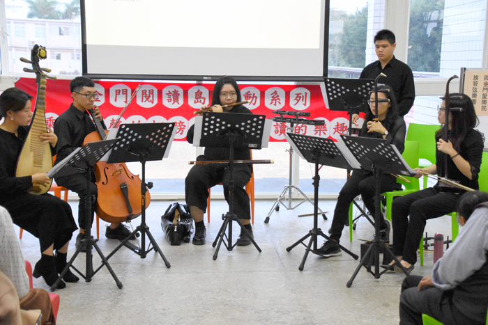 「樂」讀愈有趣!推廣閱讀,強化鄉鎮圖書館功能,提供鎮民更多知識休閒娛樂的活動,金沙鎮圖書館自5月起辦理閱讀活動,首先規劃「分享好禮送禮」,邀請轄內各校學子踴躍參與,寫下閱讀心得投稿分享,並配合暑期說書人活動,讓投稿的學生以及民眾到場分享,適逢辦理暑期正音班及音標班,也引導學生進入圖書館,學習探索以及運用館藏資源為學習加分。 此外,為了讓閱讀愈有趣,吸引大、小讀者多走進圖書館借書或參與閱讀活動,金沙鎮圖書館自8月結合文化局縣立圖書館辦理《金門閱讀島系列活動》,配合活動並以先推出父親為主題之故事分享。分別有《慶祝父親節-揉情萬千的爸爸》、《說故事玩創藝》、《動手做,進入調酒的世界,居家調飲自己來》、《親子共讀系列》、《師生共讀秀》。九月《我從遠方來│新住民適應與奮鬥故事》,更邀新住民李麗美、鄭僑螢、陳美有等,準備家鄉的美食、服裝、以及節慶習俗,讓民眾動手體驗,增近對異國文化的認識。另外,也結合環境教育辦理「限塑愛地球與環保公園低碳教育館之旅」以及邀請講師祁偉廉教授抵金帶領「親子共讀秀」寵物陪伴,透過各類主題活動,讓民眾閱讀越有趣 其中,值得一提的是《乘著音樂的翅膀》音樂閱讀活動,邀請指揮周聖文及金門愛樂民族管弦樂團成員到場分享,透過解說式音樂分享,演奏及介紹膾炙人口的中國經典樂曲,讓民眾認識傳統樂器以及國樂之美。最後一場的音樂閱讀活動於日前舉辦,指揮周聖文老師因另有演出,團員方子涵接下棒子,引領各聲部老師演奏,加上現身說法,結合現場音樂書籍,帶領民眾認識國樂以及各項樂器,共譜美好的音樂閱讀時光。 活動現場,金門愛樂民族管弦樂團成員,方子涵、陳佳琳、陳映蓉、石子弘、林毅、鄧宇捷等,擔任樂器示範解說。分別依據個別樂器,即席演出以及樂器特性介紹,亦透過中西樂曲比較分析,生動有趣地介紹許多不為人知的樂器冷知識,並演奏花好月圓、揚鞭催馬運糧忙、彩雲追月、蘇南小曲、月夜愁、故鄉的太陽、望春風、雨夜花、大提琴:巴哈G大調第一號無伴奏大提琴組曲前奏、夜來香與相思河畔等多首古典與流行的音樂,讓與會讀者大開眼界,也從中認識國樂的發展歷史,與音樂之美。 金沙鎮圖書館表示,感謝指揮周聖文以及金門愛樂民族管弦樂團成員,在這一系列音樂閱讀活動中,以別開生面的解說加上即席演奏的方式,帶與會鄉親認識國樂之美,這亦是金沙地區難得的藝文活動,讓所有人在輕鬆的氣氛中學習國樂知識,共度美好時光,也為今年閱讀島活動畫下完美句點。感謝每一位到場分享的講師、學生和讀者,明年度將視情況再辦理閱讀活動,展時歡迎鄉親踴躍參與。