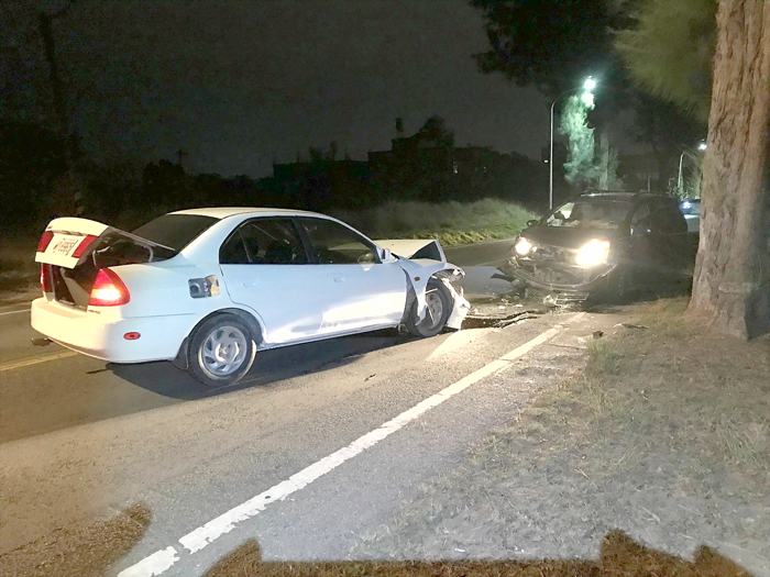 夜間超車危險!前天(23日)夜間9時許,在環島北路二段,一部女性駕駛的自小客車疑因超車不當導致與對向自小客車發生對撞,造成兩部自小客車車頭嚴重毀損,所幸二車駕駛人均受輕傷無大礙,經警方實施酒測,雙方駕駛皆無酒後駕車情形,至於詳細肇事原因,尚待金城警分局進一步調查釐清。夜間超車更應提高警覺,以維用路人安全。 關於這起車禍,金城分局表示,是一部黑色自小客車,行駛到環島北路二段事故地點時,疑要超越前方車輛過程中,駛入對向車道與迎面駛來的白色自小客車發生正面撞擊。事故現場碎片散落、現場機油滲漏整地,警方也緊急連絡金寧清潔隊人員前抵清理,防止因機油滲漏路面路滑造成二次車禍。 金城分局呼籲用路人,「依據道路安全規則,在對面有來車交會或前行車連貫二輛以上者,不得超車」。而夜間行車由於視線差,路況無法一目了然,加上地區道路狹窄,夜間超車更應提高警覺,以維用路安全。