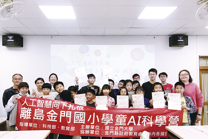 國立金門大學辦理「人工智慧向下扎根-離島金門國小學童AI科學營」,首場在金鼎國小,金大校長陳建民希望藉由AI科學營之大手牽小手活動,將影響人類生活甚鉅的AI科學新知扎根,並推廣至金門各國小校園。 金門大學為讓金門縣各國小學童有機會進入AI科技世界,該校電子工程學系、社會工作學系攜手縣內國小舉辦「人工智慧向下扎根-離島金門國小學童AI科學營」,在郭昭宗教授、童小珠教授的主持下,第一場次AI科學營已於金鼎國小展開,並將在縣內各國小陸續舉辦20場次的營隊活動。 金大校長陳建民表示,隨著AI人工智慧掀起熱潮,未來社會是由人類與AI共同工作的時代,孩子無論在學校學習或在校外生活體驗以及未來的工作,都無法脫離AI,迎接AI時代,惟有不怕失敗,才有勇氣探索未來。陳建民說,這一次AI科學營的舉辦,主要目的是讓國小學童有機會及早接觸AI新知,鼓勵學童動手做、不怕失敗、勇於嘗試、培養思辨及主動解決問題的學習態度。 計畫主持人電子系郭昭宗教授表示,本計畫團隊是由電子系與社工系跨領域師生所組成。活動內容包括認識AI、AI初體驗-AI人臉辨識、AI闖關遊戲、與AI對玩-AI遊戲機實作、與AI對話-AI聊天機器人實作。期望透過科學營生動活潑趣味之互動方式,引領參與科學營之國小高年級學童進入Al人工智慧領域,並且親自體驗與認識AI,引發學習人工智慧的興趣,好奇心將成為學童持續學習的動力,讓學童對掌握AI具備信心,成為善用AI的主人翁。 金大表示,本次AI科學營是由科技部補助之科普活動,科技部及教育部指導、國立金門大學主辦,金門縣教育處暨縣內各國小協辦,此外,電子系的林政宏、邱柏勛、梁庭瑋,社工系的陳柏銘、謝宇珊、鄒雲等同學也參與本計畫的執行。