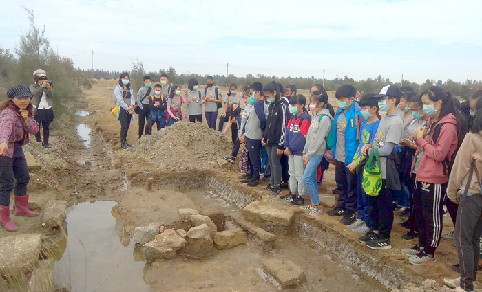 參觀鹽場考古 學童用鹽畫勾勒西園印象