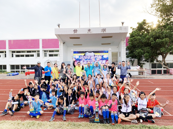 2020金門主委盃足球賽14、15日假金湖國小操場舉行,由縣內多所國小及幼兒園組隊參賽,共有二十五隊參加競賽。賽事於15日下午結束,由教育處處長羅德水、體育場場長蔡木川、體育會理事長唐麗輝、足球運動委員會主任委員李金譚等人進行頒獎。 為增加學習球類運動機會,鍛鍊學生基本體能,調劑身心健康,培養學童積極進取之運動精神,暨廣植足球活動參與人口,為推廣基層足球運動奠定紮根工作,舉行本項比賽。本項競賽由中華民國足球協會指導、金門體育會足球運動委員會主辦、金門縣五人制足球協會協辦。參加對象為縣內幼兒園至國小六年級的學童,分為幼兒園組、國小一至三年級組、國小四至六年級組三個組別比賽。 唐麗輝表示,感謝前人為縣內足球運動的推展付出心力,足球運動委員會從無到有,乃至於如今有許多愛好此運動的人響應,得來不易。足球是體育會支持的運動之一,很高興能看到許多小選手們來比賽,體育得從小紮根,而足球能讓身體的運動神經發展平衡。感謝家長們的支持,才能成就小朋友投身於各種的活動。以前的足球一隊得有十一個人參賽,現在發展了五人制的足球,也是因應少子化的現象,希望在足球運動委員會的引導下,未來足球能在金門更加蓬勃發展。 李金譚表示,自足委會成立以來,今年是辦理第三屆的比賽。自三年前開始推廣足球運動,成效越來越好,已有十所以上的學校社團活動有開辦足球運動,希望未來能更擴大發展。除讓小朋友在課外活動有多項運動項目的選擇外,也希望未來能有機會以此運動為金門爭光,未來希望金門能發展出四級的足球比賽,從小學、國中、高中,乃至於大學,都能辦理相應的足球賽事。足委會目前正爭取比賽用的球場,目前金湖國小已爭取到人工草皮球場的規畫設置。 金湖國小校長陳為信補充表示,金湖國小現有的操場做為比賽用地,足球在其上滾動會不規則的彈跳,不利於比賽的進行,場地如因雨而溼滑也將大幅影響選手的表現,鋪設人工草皮後將改善此現象。人工草皮的鋪設,若於明年一月開始動工,預計明年六月可以完成,未來在該場地可規劃出四個比賽場地,以供幼兒園體驗乃至五人制、八人制比賽的進行。 連續二日的比賽,小選手們淋著細雨、頂著烈日在場上奮戰著,場邊的大人則是比他們還緊張,不時的喊著「往前防守」、「把球傳出去」。小選手秉持著球來就踢的精神,一群人不時地擠成一團,球就在一來一往的攻防間不時地往界外踢出去。家長們組成的後援隊聲勢浩大,人數不下於選手,在頒獎時也高興的和自家參賽的小選手們合影留念。 足球運動委員會總幹事許鴻志勉勵小選手們,足球比賽的結果雖有分名次,不管誰輸誰贏,相信大家都玩得很開心,以運動為目的,享受汗水淋漓酣暢的快感。 2020主委盃足球錦標賽,各組前四名成績如下:幼兒園組:冠軍湖幼小將(金湖幼兒園)、亞軍安幼霹靂隊(安瀾幼兒園)、季軍何浦太陽之子與安幼旋風隊並列第三。 國小1-3年級組:冠軍金湖足球小小將(金湖國小)、亞軍何浦幼虎、季軍中正國小A隊、殿軍何浦幼獅。 國小4-6年級組:冠軍何浦獅、亞軍何浦虎、季軍垵湖隊、殿軍湖埔國小。