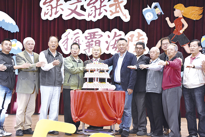 金城國中昨日舉行建校五十六周年校慶,學校舉行盛大慶祝活動,除於藝文中心頒獎與十一位傑出校友、表揚資深優良員工外,也為甫改裝完成的體育館舉行重啟儀式。 縣長楊鎮浯、教育處副處長黃雅芬、行政院金馬聯合服務中心執行長翁明志、金城鎮鎮長李誠智、國民黨金門縣黨部主委石兆瑉、金城鎮民代表會主席陳天成、副主席蘇碧浯、代表倪于媃、胡凱宇、翁沂杰、陳子芸、歷任校長、縣內多所中小學校校長、台南金城國中校長蔡明昌等人到場為金城國中五十六歲祝賀。與會貴賓和全校師生代表一同歡唱生日快樂歌,並切下生日蛋糕,共許城中校運昌隆。 楊縣長表示,回到母校校園,看到學弟學妹,彷彿看到三十幾年前的自己,充滿非常多的感動。這三十幾年,金門不斷地在往前走、在進步、在變化,重要的是,金城國中培育出一代又一代優秀的人才來協助金門迎接所有的挑戰,值得給所有金城國中的校友們掌聲。城中在歷任校長的努力之下,奠定了非常好的基礎,在現任校長的領導之下,各方面取得了非常棒的佳績,如今年的主題「能文能武、稱霸海陸」所示,在各項的比賽,如音樂、美術、閱讀、運動等項,能文能武,同時培養學生的全能發展,不管是海洋抑或是各方面的領域,學校都有非常好的表現,此皆有賴於所有師長暨同仁為學校的付出。感謝師長們對這片教育的園地辛勤的耕耘。 翁明志說,服務中心和金城國中是一牆之隔的鄰居,多年來看著這所學校在歷屆校長努力經營之下,學校的改變與成長。願金城國中百尺竿頭更上一步,祝福校運昌隆。 活動中表揚傑出校友,行政類:黃再求、陳水友、董燕輝,社會服務類:董森堡、洪家游,學術類:吳俊育、李元萱、黃庭超,商業類:王婷、李卓翰、許盈欣。頒獎後並由黃再求、王婷、黃庭超、李卓翰四位和學弟妹們分享其人生經驗,勉勵大家勤勉的學習。 而園遊會活動,全校參與的班級攤位創意十足,展現團隊合作精神。新住民學習中心也請新住民姊妹們做出多道特色料理招睞賓客,呈現學校新住民教育推展的成果。城中校慶,校園處處充滿歡笑聲和祝福聲,學子沉浸在熱鬧的園遊會中,校友、貴賓一同感受學子的活力、創意,在校園處處充滿慶祝氣息,也為校慶活動劃下圓滿句點。