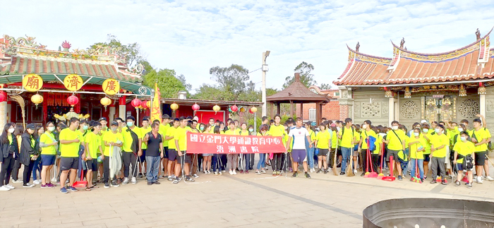 國立金門大學為加強學生的生活教育與服務學習精神,該校學務處舉辦「把愛傳出去,擁抱金門」活動,師生前往學校周邊的盤山村進行環境服務,藉由活動讓學生學習利他精神,並與盤山村民加強友善連結。 該項活動由總教官許悠洋帶領社會工作、都市計畫與景觀、工業工程管理、建築等學系一年級新生近200人參加,透過實作,大家挽起衣袖協助村民整理社區環境,清理廣場、馬路等戶外垃圾,並將雜草清理,周邊環境回復乾淨。 金大校長陳建民表示,該校對學生的生活教育格外重視,盼藉此勞動服務的活動,激發學生自動自發的社會行動,學習愛護校園、關懷社區,參與公共事務,以提升生活品質與促進自我成長。 金大學務長呂立鑫也表示,此次參與活動的學生,是以大一服務教育課程學生為主,希望經由這次走出教室的服務學習,能引導學生理解社區與校園的共生關係,進而共同為環境永續努力。 許多同學指出,這一次活動,讓他們親自走進社區參與社區環境清理工作,不僅感覺很踏實,也更理解服務的價值與環境保護的意義,大家共同為環境永續盡一分心力。 盤山村長翁品洋表示,這次金大學生前來社區服務,同學們認真打掃的態度,讓他非常感動,許多阿公、阿嬤,也為這群義務幫忙整理社區環境的同學,表示讚許,大家一起動手整理環境,維護生活空間品質。