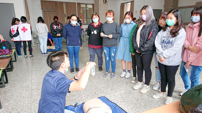 國立金門大學為增進全校師生正確的急救知能,該校學生事務處與金門縣衛生局合辦CPR(心肺復甦術)+AED(自動體外心臟電擊去顫器)證照訓練活動,邀請專家講解如何讓心搏驟停的患者恢復自然呼吸和血液循環,共計近50學員完成訓練。許多受訓學員表示,不僅獲得更多急救有關知識,同時也能對身邊有需求者提供急救的協助。 金大校長陳建民表示,該校非常重視校園安全網的建置,除制定校園安全事件通報作業與處置流程之外,並增強學校師生緊急應變的能力。在校園中並設有監視器、緊急求救柱、急救設施等。此外,校安專線與專人定時巡查等也能確保緊急事件能立即得到處理。陳建民說,這一次訓練,主要是加強師生急救和應變知能,以期能在黃金時間內進行救護,降低校園中的意外事件。 金大學務長呂立鑫表示,為強化該校的救護能力,今年11月已新購6台自動體外心臟去顫器(AED),讓發生心因性猝死併心律不整患者能得到搶救的契機,該設施能夠自動偵測傷病患心律脈搏,並施以電擊使心臟恢復正常運作。此次裝設的急救設施因使用方式簡便,開啟機器時並附有語音說明,另有圖示輔助方便非醫療人員順利操作,所以坊間也稱為「傻瓜電擊器」。呂立鑫說,目前該校已將AED設備分別設置於教學大樓、圖書館、體育館、運動場、宿舍和餐廳等場所,以便發生緊急狀況時能隨時取用。金大表示,AED是一種可攜帶的醫療設備,能夠診斷特定的心律不正狀況,並給予去顫電擊。若有師生或校外人士於該校內發生心臟停止等意外,若能按照AED的說明進行正確操作,可使心臟恢復正常心跳,或可挽救意外事件的發生。