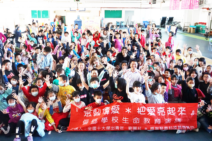 金湖國小12日於生命教育宣導活動中邀請生命鬥士—劉麗紅女士至校,與全校三至六年級學生進行生命教育講座,分享她的生命故事。湖小全校師生專心聆聽,感受生命的可貴與難得,珍惜現在所擁有的,大家有著滿滿的收穫。 這次湖小與台灣信望愛慈善會合作,特別邀請劉麗紅到學校演講,希望能夠藉由她的演講,傳遞愛的力量,鼓勵小朋友立志向上。佳音電台主持人劉麗紅是小兒麻痺患者,鐵鞋重達三公斤,雙手還要握拐杖,卻勇於嘗試,從大學時代起,就參與十二公里健行、登萬里長城、游泳、潛水、玩飛行傘,包括今年的殘障摩托車環島和巡迴公益演講,都令人嘖嘖稱奇。劉麗紅幕前幕後也進行新聞報導,「重鐵鞋擋不住採訪心,再狼狽也要體驗情境」,她堅持把正面故事帶回電台,帶給聽眾深刻的感動、光明報導,她認為很值得。 劉麗紅的演講題目為「愛的加減乘除」,在演講中,她分享了她的生命歷程,也用圖片一一說明她完成的每一個「不可能任務」。她告訴孩子們,人生不一定要贏在起跑點,但一定要堅持到終點,用本身的例子來作見證,其中她特別提到「愛的加減乘除」與全校師生一同分享,希望大家能夠運用「加」—努力、「減」—障礙、「乘」—信心和「除」—驕傲來面對生命中的每一個挑戰,真的非常的有道理! 每年的十月為生命教育宣導月,金湖國小輔導處今年以生命鬥士—謝坤山的故事為開頭,與湖小志工隊帶領全校的孩子進行了一連串的生命教育闖關與體驗活動,希望全校孩子們對於身障、語障的人能夠有深一層的認識與同理。這次能夠邀請到劉麗紅蒞校演說,在生命教育的推廣方面有了更棒的連結,劉麗紅與謝坤山同時也是多年的好朋友,她將生命鬥士的精神與樂觀分享給全校師生,她告訴孩子,最大的障礙其實不是身體的障礙,而是心靈的障礙,把心門打開,迎向陽光,就能擁抱正面的幸福。 湖小校長陳為信表示,劉麗紅女士的生命故事值得全校師生來聆聽,她的精神更是學習的對象,這是一個相當難得的機會,感謝台灣信望愛慈善會給予湖小這樣的一個機會,全校師生們收穫滿滿,對於生命教育有更深的體會。