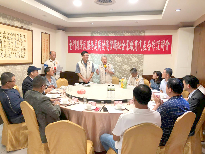 為協助在金門地區退除役官兵順利投入職場,提供優良的事業單位和廠商,金門縣榮民服務處近日辦理「109年度企業廠商代表合作說明會」,邀請國立金門大學、銘傳大學金門分部、勞動部金門就業中心、宏玻陶瓷廠、金合利製刀廠、威力保全、長慶保全、聖祖貢糖、天下貢糖、國代建設公司、康治企業、臻霖實業股份有限公司等多家知名在地企業廠商與會。 榮服處宣導輔導會促進退除役官兵就業輔導措施,強化與公部門、民營企業及學校的連繫合作,並針對產業用人等議題相互交換意見,期能為在地退除役官兵拓展金門地區多元就業管道及開發優質職缺,確實將人才留在家鄉,為金門經濟發展共同打拚。 榮服處長呂媽定向與會廠商代表們表示,退除役官兵具有刻苦耐勞及高度忠誠穩定性的特質,相信絕對是各企業商家穩定的生產動力;同時,輔導會為輔導與協助退役官兵順利就業,特別規劃提供專業的職涯諮商、適性評量、擴大會外職訓補助、創業諮商輔導等一條龍服務,同時爭取預算編列,積極推動促進穩定就業方案,以實質的津貼補助,協助退除役官兵適應職場、穩定就業;並提供企業進用退除役官兵獎勵及職業訓練機構輔導退除役軍人就業獎勵等措施,鼓勵業主共同參與輔導就業工作。 呂媽定強調,輔導會自107年7月1日起實施「促進退除役官兵穩定就業方案」,迄今各服務機構執行成效頗佳,也深獲受惠的退除役官兵高度的肯定,期望藉由穩定就業方案及相關津貼的持續推動,能夠協助退除役官兵穩定就業及增進企業用人穩定性。 在說明會上,呂媽定率業務主管及就業站同仁感謝企業廠商長期協助榮服處,也盼日後在促進退除役官兵就學、就業及職訓,持續給予支持及協助。