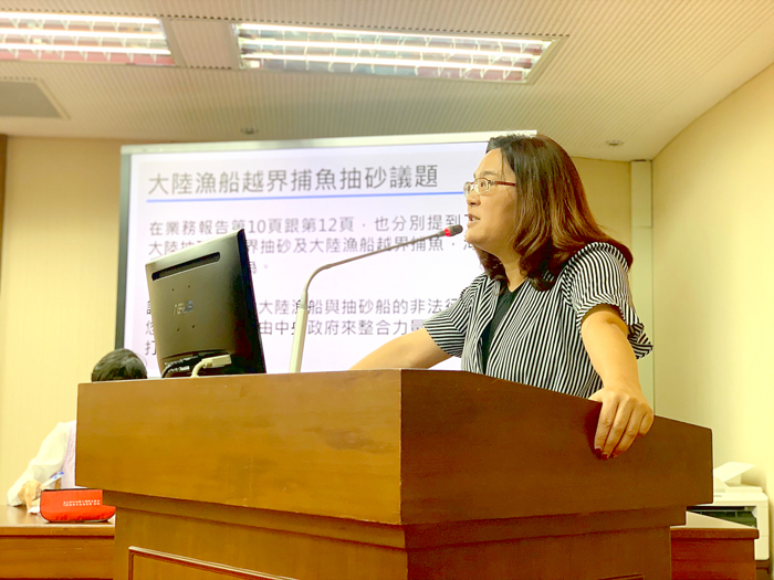 馬祖南竿日昨遭近4百艘大陸抽砂船在南竿與莒光間的劉心礁水域進行抽砂活動,引來馬祖居民憂心。金門立委陳玉珍對此也質詢海洋委員會主委李仲威,她表示對於大陸不論是越界抽砂或捕魚,海巡弟兄都應該要有強勢驅離作為,以保障金門地區居民的生計與國土安全。但另方面對於金門地區目前尚有40餘艘遭沒入的船隻仍待拆解,也希望中央能夠出面協助解決。海委會主委李仲威回應表示,會和漁業署協調研究,未來中央將編列專案經費拆解這些遭沒入的大陸船隻。 陳玉珍表示,海巡單位積極處理大陸抽砂船越界抽砂及大陸漁船越界捕魚的問題,不論金門或馬祖地區,地方鄉親都有目共睹,且感謝海巡弟兄的努力,捍衛當地漁民捕魚的權益及維護國土不被繼續淘空流失。但接踵而來的問題是,一旦將大陸漁船或抽砂船連人帶船查扣帶回,地方政府拆解沒入船隻的能量卻跟不上,將會造成地方縣市政府的麻煩。 陳玉珍說,舉金門地區為例,目前金門地區到目前為止共查扣了大陸漁船73艘,其中包括有木製的漁船,有鐵殼船,還有玻璃纖維材質等各式船隻。依照目前的法令規定,玻璃纖維的船隻由漁業署補助計畫經費,拆解後運送回台處理。至於木頭跟鐵製的船隻部分,則由地方政府自行拆解,所拆解下來的廢棄物再由環保局負責運至當地掩埋場堆置處理。 陳玉珍表示,目前金門縣政府已經拆解30艘木製船隻,但尚等待拆解的船隻仍有43艘,都暫時存放於縣內港口附近。一來,金門港口船隻停靠席位本來就擁擠不足,恐影響航道運行,二來拆解後的廢棄物就地掩埋,金門廢棄物掩埋場的空間也是受限,她特別向李仲威主委建議,是否可由海洋主管機關,也就是海洋委員會來協調漁業署解決此一問題。 李仲威答詢時表示,這個沒入船隻拆解不及的問題他已經注意到,他也會與漁業署進行溝通協調,未來將朝中央編列專案經費來拆解這些遭沒入的大陸船隻。陳玉珍則回應說,感謝海委會的協助,未來仍期盼海巡弟兄能加強巡邏,捍衛我國海疆,也能進一步遏止國土不斷遭淘空流失的危機。