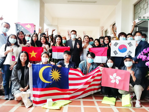 國立金門大學今年9月入學的境外新生,為感謝校方多月來的接機、課業、社團、生活適應及各種課外活動等方面協助,40多名外籍生昨日聯袂拜訪陳建民校長,學生們贈送母國國旗及表演民族舞蹈,並邀請校長和師長們共舞,表達對校方多方照顧的謝意,現場氣氛歡欣、熱絡。陳建民校長也特別準備T恤、運動毛巾與溫水杯回贈學生,祝福新生在金門的學習開心而充實。 許多學生開心的表示,他們非常喜歡金大的學習環境,感謝老師、學長姐和同學的熱心協助,特別是在防疫期間,師長們不畏被感染的威脅,在入境、防疫旅館接送與報到過程中的溫馨協助,讓他們很快融入金門大學的大家庭中。 陳建民校長表示,今年因新冠肺炎疫情的影響,使得外籍學生來台受到些許不便,校方全力協助外籍生入台和各項照顧,迄今已接送33批次,共計126名境外生,其中有41名是今年度錄取的外國新生或僑生新生。陳建民說,面對此次疫情,學校始終以最嚴謹的態度來應對,迄今在教學、研究和學生活動方面等都很正常,全校教職員生並無疑似感染或感染的案例。未來該校持續往國際優質大學前進,歡迎海內外各地優秀學生到金大就讀,並認識金門在地特殊文化和美景。 顏郁芳國際長指出,這(109)學年度該校外國學生共錄取21名新生;僑生方面則錄取53名新生,迄今已完成報到的境外新生有45人,入學的學生人數持續成長;其中以印尼生人數最多,共有26人。學生來源國除原有的馬來西亞、印尼、越南等國家外,今年新增巴布亞紐幾內亞、韓國、迦納等國家,其中迦納地處非洲,學校尚在努力協助新生取得簽證中,未來在校園內將出現更多不同國籍境外生的身影。